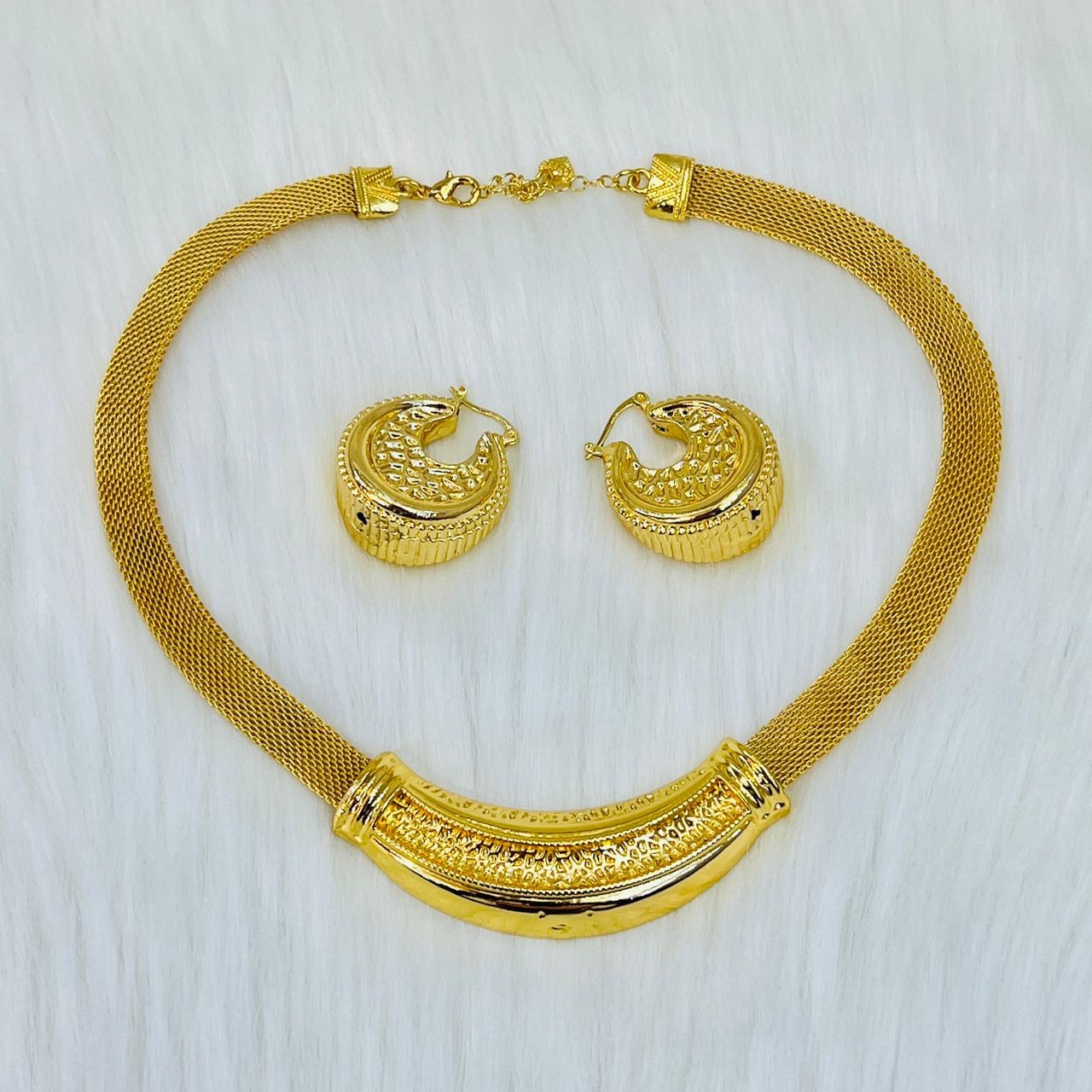 • Collier Dubaï or bijoux mode dames fête boucles d'oreilles