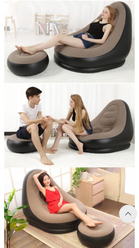 Canapé-Lit D'extérieur Gonflable Et Pliable Avec Repose-Pieds, En Tissu Floqué Doux Et Confortable, Pour Homme Et Femme Paresseux, Loisirs Créatifs