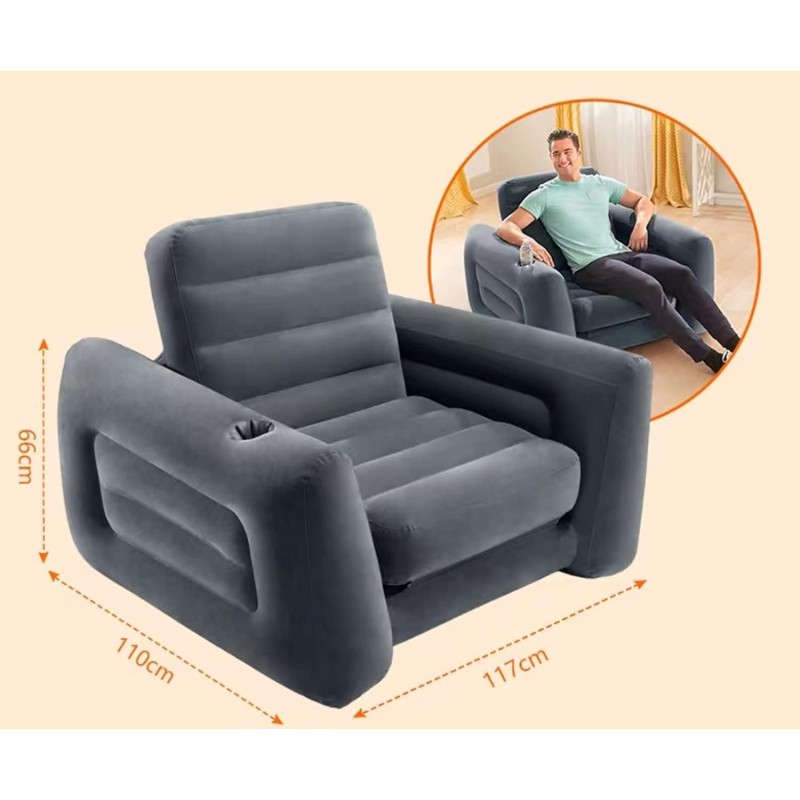 • Notre canapé gonflable est de la taille portable parfaite lorsqu'il est plié, facile à transporter et à ranger lorsqu'il n'est pas utilisé, nous vous fournissons également une pompe électrique, afin que vous puissiez commencer votre journée confortablement, paresseux et relaxant sans souci