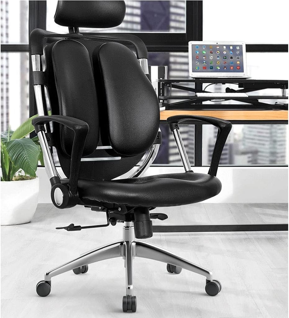 Chaises de bureau pour la maison - Dossier haut - En maille - Ergonomique - Pivotante - Double dossier - Avec accoudoirs et soutien lombaire - Chaise de bureau pour chambre à coucher