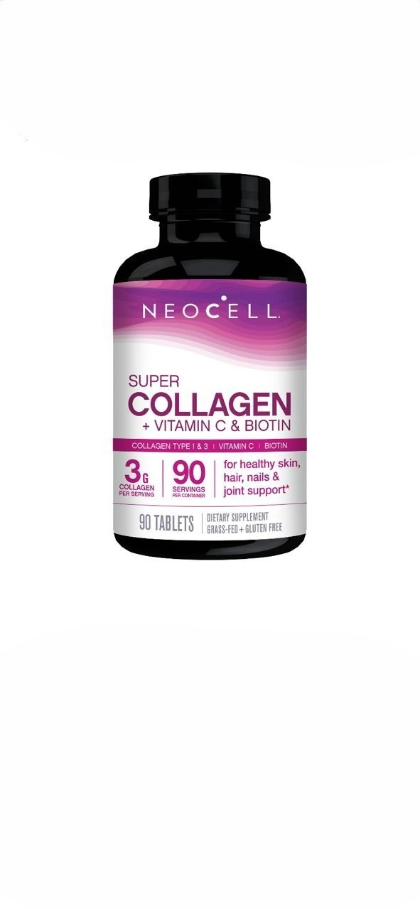 • NeoCell Super Collagen C avec comprimés de biotine, aide à promouvoir une peau jeune, des cheveux brillants et des ongles forts.