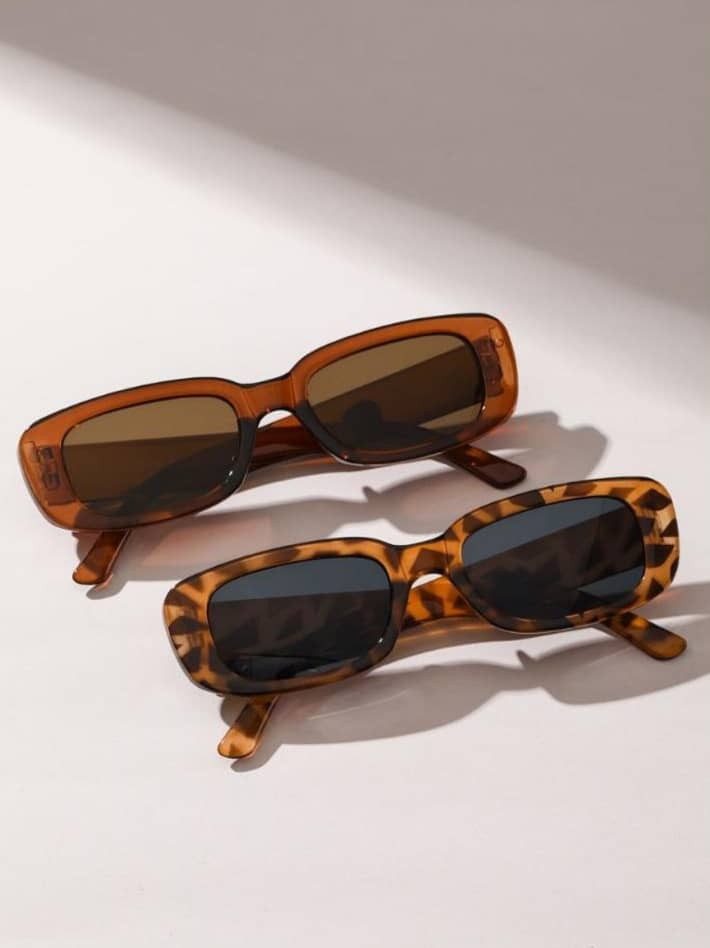 Cute Brown Square Glasses Square Sunglasses Retro Vintage Cyber Goth Fancy Dress Party