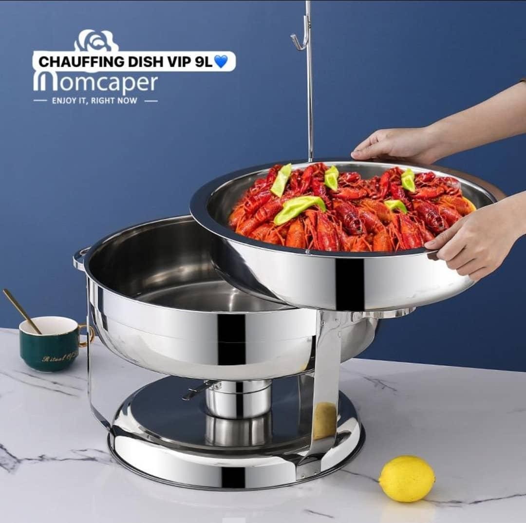Ensemble de marmites Rondes pour Serveur de Buffet électrique, Chauffe-Plats en Acier Inoxydable, Grande capacité de 9L, Chauffe-Plats pour fête/Banquet de Mariage, avec Couvercle