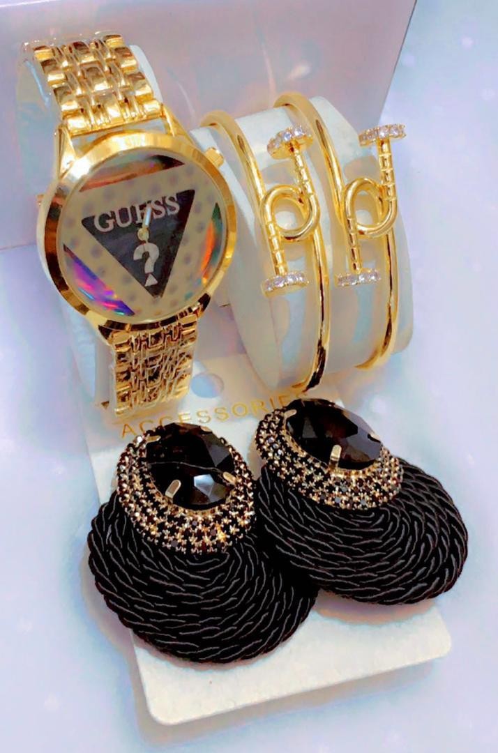 • Ensemble  Montre  Bracelets   Boucles  D'oreilles Pour Femmes