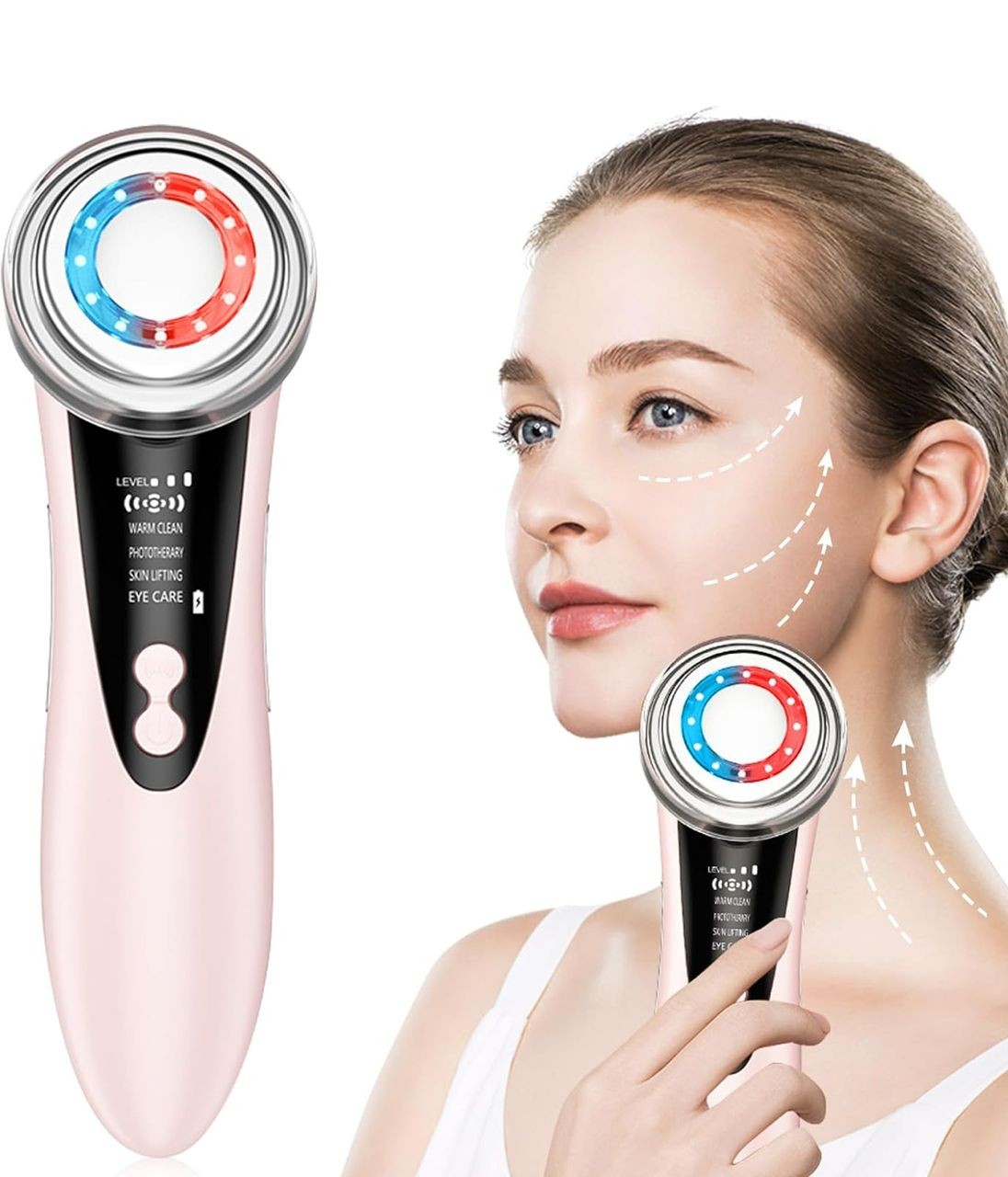 Thérapie photonique LED Le dispositif de lifting du visage dispose de deux modes de photothérapie faciale LED. La lumière rouge peut pénétrer le derme, favoriser la production de collagène, réduire les rides et donner à la peau un aspect jeune. La lumière bleue resserre les pores, améliore l'acné et les points noirs, soulage l'inflammation, raffermit l'affaissement de la peau et lisse les ridules.