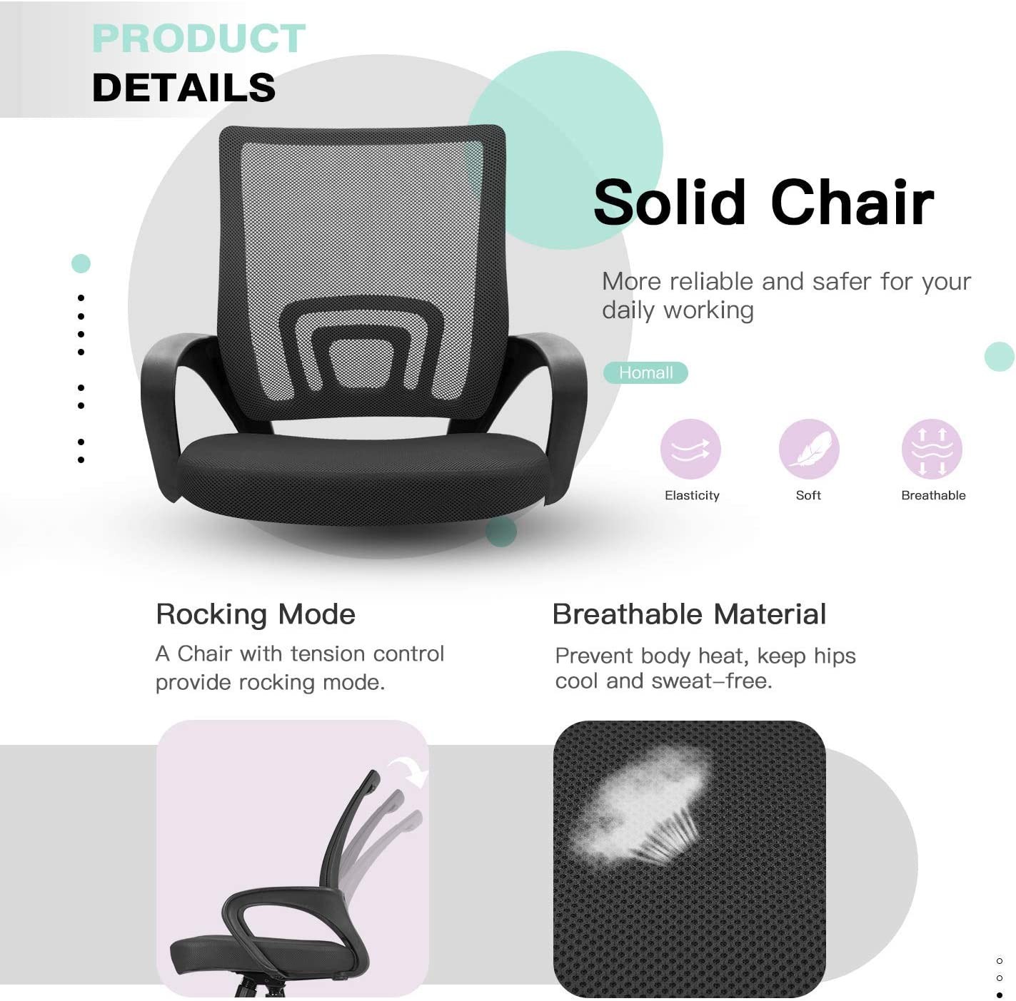 • Haute qualité : la chaise de bureau est fabriquée en éponge haute résilience et tissu en maille