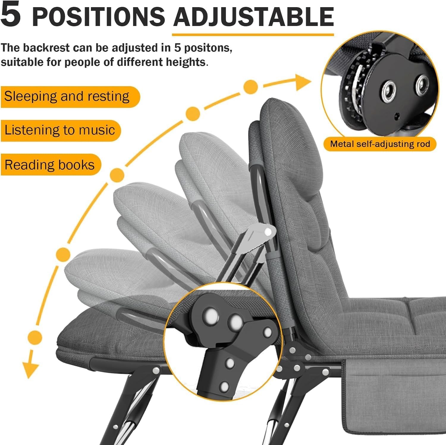 5 POSITIONS RÉGLABLES : La conception innovante réglable à 5 positions vous permet d'ajuster votre posture à volonté, que vous dormiez, lisiez un livre ou profitiez d'un bain de soleil, elle peut facilement répondre à vos besoins.