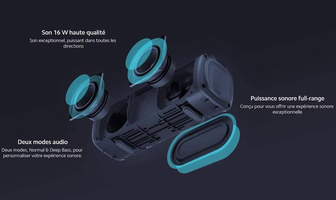 • Grâce à ses puissants haut-parleurs de 2 x 57 mm, la Xiaomi Mi Pörtable Bluetooth Speaker (16w) délivre une puissance RMS de 2x8 Watts pour une expérience audio agréable teintée de basses intenses. Élégante, la Mi