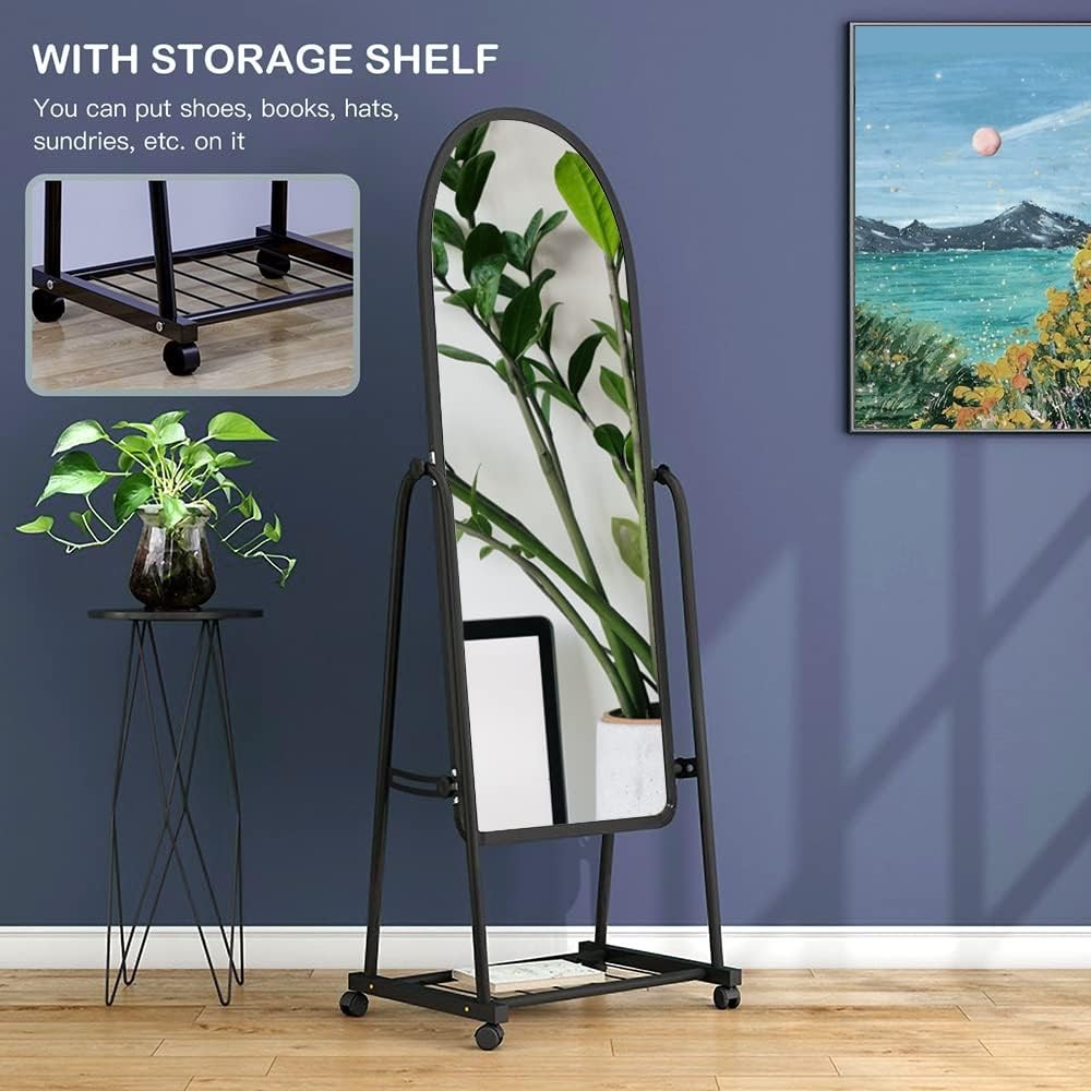 l✔ Anti-explosion – Ce miroir pleine longueur adopte un miroir flottant de haute qualité, un design anti-explosion, l'image est claire et sans distorsion. Support en fer métallique, style minimaliste moderne, durable et facile à installer. ✔ Angle réglable – Le miroir avec bouton réglable vous permet d'ajuster librement l'angle que vous voulez selon vos propres besoins et d'ajuster facilement la zone de visualisation. ✔ Design à roulettes : quatre roulettes amovibles sur le fond pour un mouvement facile, et le miroir peut être fixé après le retrait. La surface blanche de ce miroir pleine longueur et les lignes lisses de son cadre en métal en font une belle décoration d'intérieur. ✔ Compartiment de rangement inférieur – Ce miroir de courtoisie dispose d'un compartiment de rangement inférieur pour votre maquillage, livres, sacs, accessoires, chaussures, etc. ✔ Utilisation : la taille est de 167,6 x 43,2 cm, idéal pour la chambre, le salon, le vestiaire, la salle de bain, le porche, le magasin de vêtements, l'hôtel, le studio, le salon de coiffure, le dortoir, le bureau, etc.