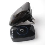 9. Très facile à installer, il suffit de brancher le récepteur sur une prise électrique et de coller le bouton sur la porte ou le mur à l’aide des rubans adhésifs fournis.