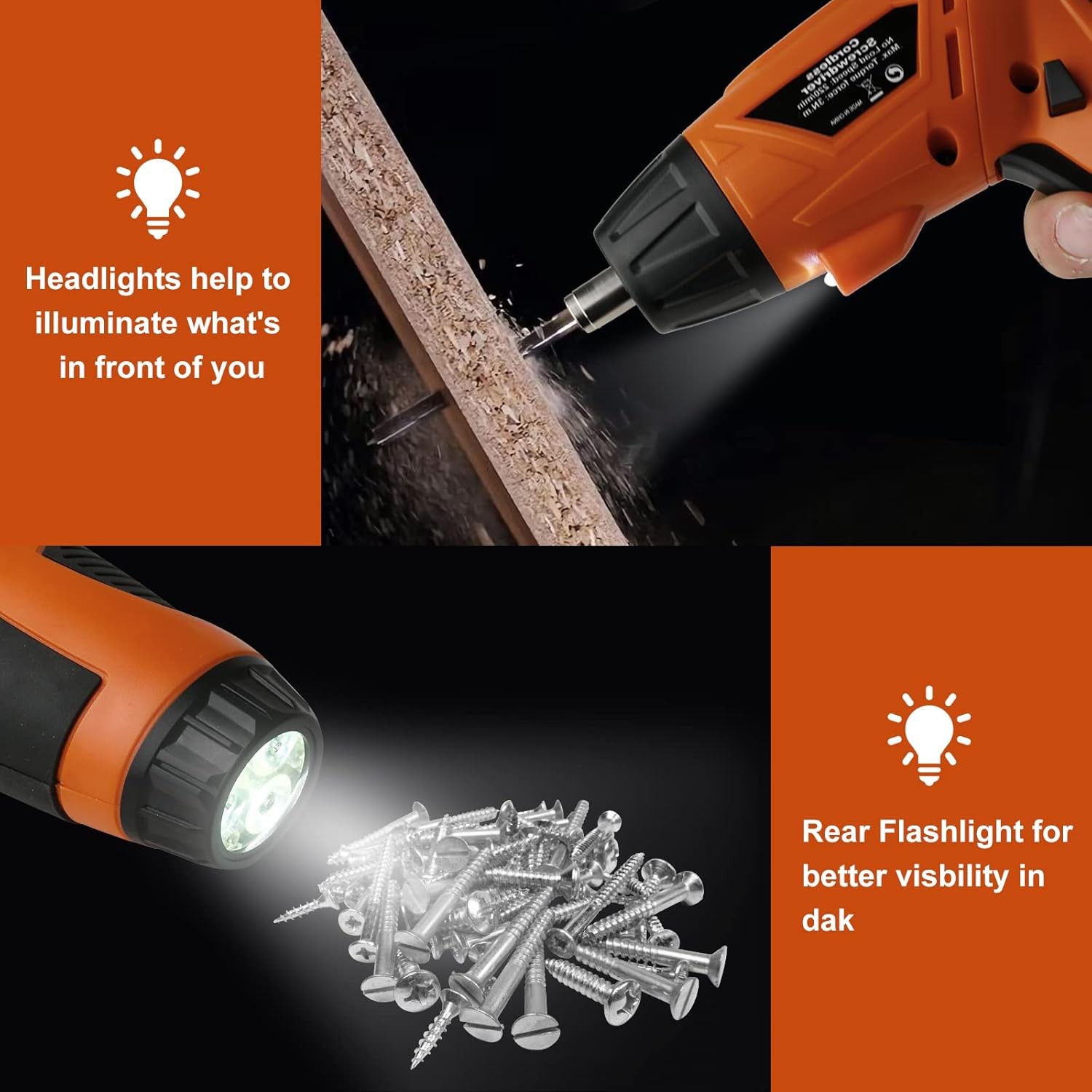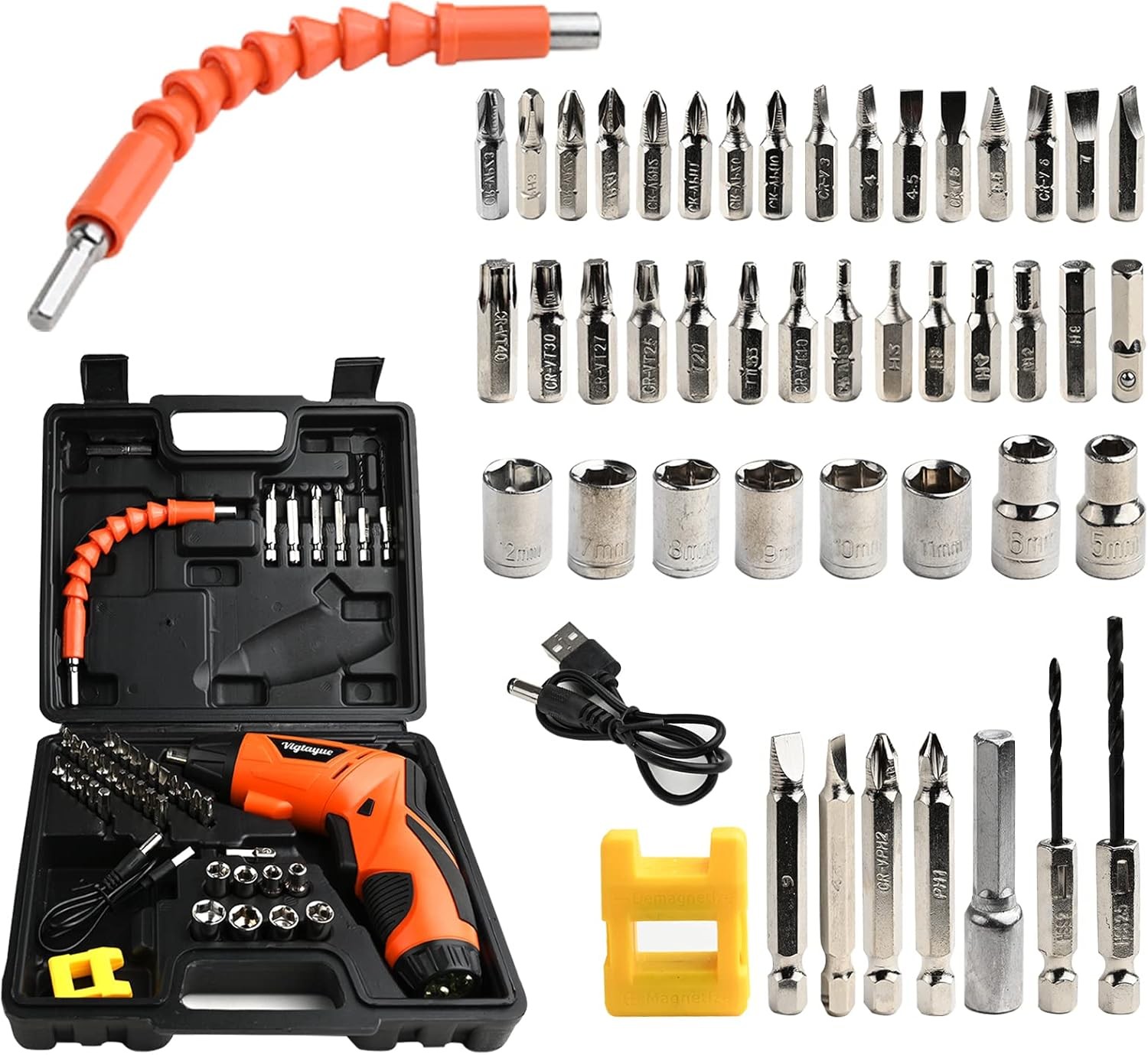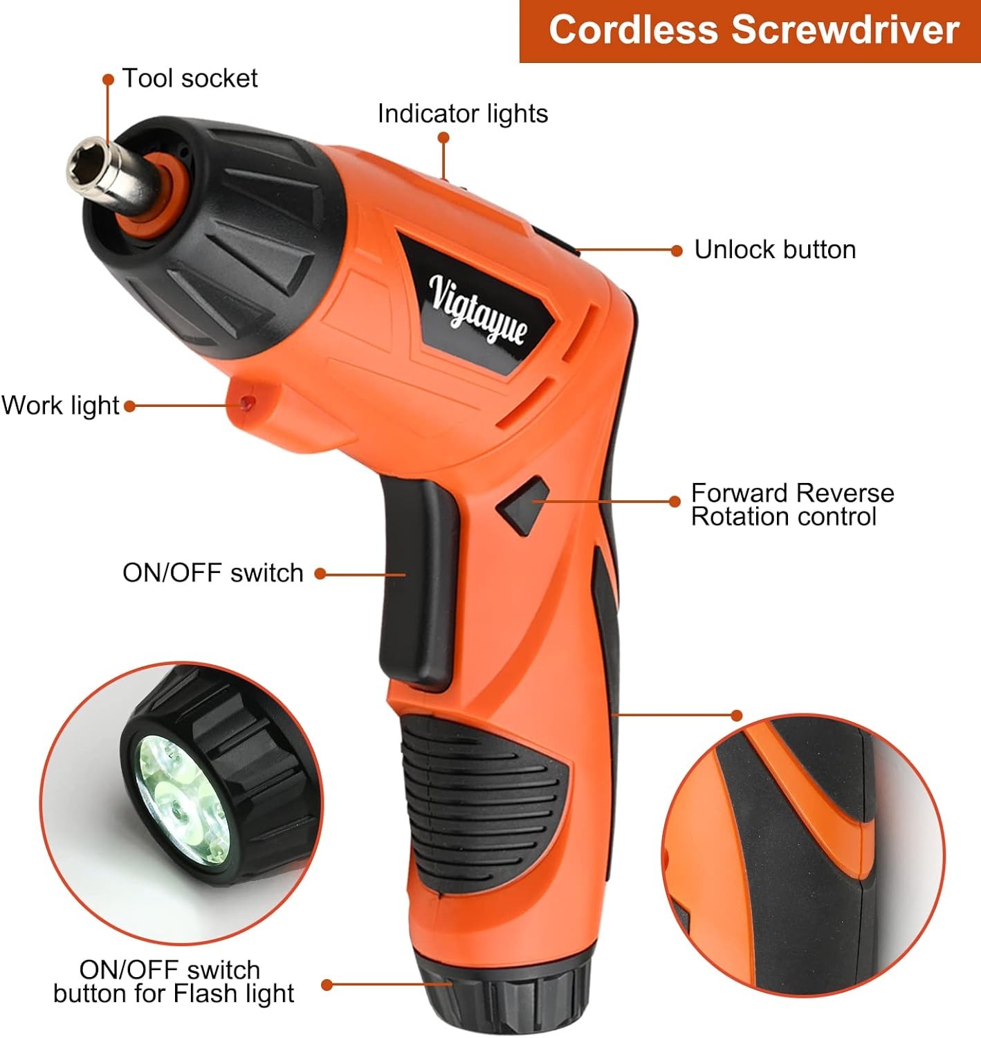 • Facile à utiliser : tournevis électrique sans fil Vigtayue de couleur orange que vous pouvez toujours trouver. Facile à ranger et à utiliser avec un étui léger ajusté. Conçu pour vos projets quotidiens à la maison et de bricolage