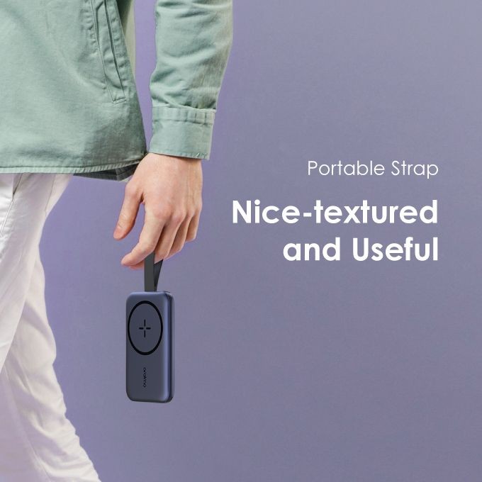 Ne vous inquiétez pas, il n'y a pas de sac ou de poche pour emballer le MagPower. Vous pouvez le prendre avec la sangle.