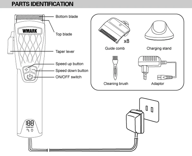 • Accessoires: 4 guide peignes (1.5/3/4.5/6mm),