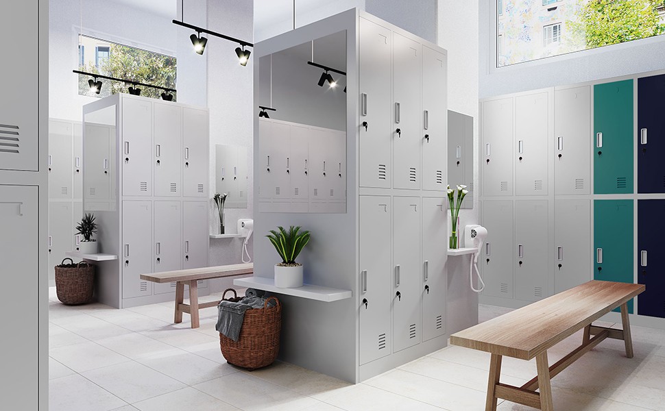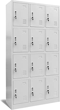 Casier Vestiaire 3B4A Armoire Metallique 12 Compartiments Revêtement En Poudre 185 cm x 90 cm x 40 cm (Gris)
