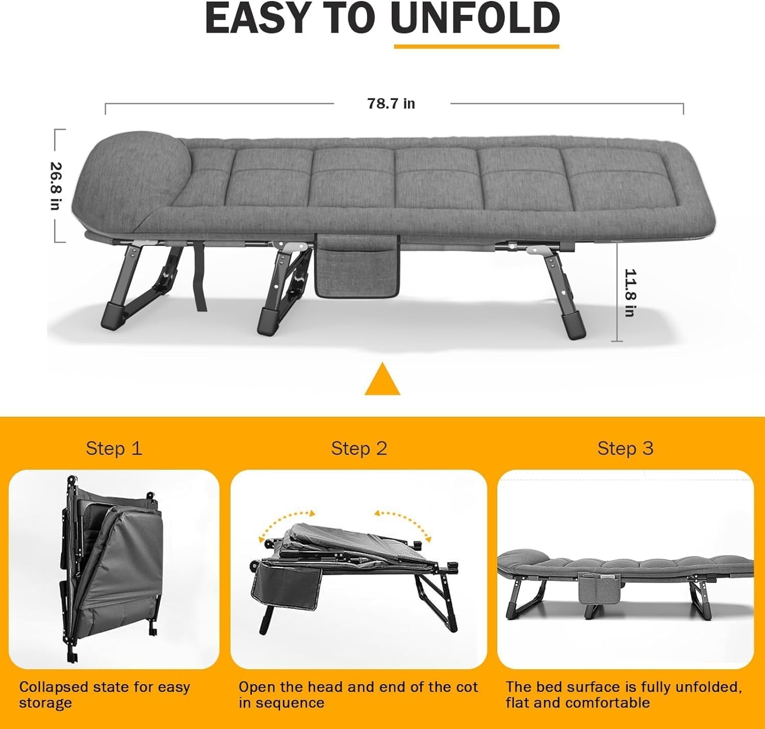CONCEPTION MONOBLOC : Vous n'avez pas besoin de préparer un coussin supplémentaire, ce qui améliore considérablement la portabilité de ce lit pliant, et nous avons préparé le coussin le plus doux pour vous !