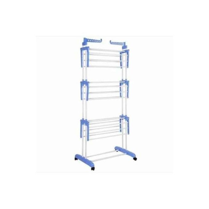 Cet étendoir à linge est idéal pour sécher et ventiler vos vêtements. Soigneusement suspendus, les vêtements ne se déforment pas et ne se froissent pas, ce qui rend le repassage inutile. Sur les nombreux tuyaux en métal, les vêtements peuvent être suspendus directement ou sur des cintres. Les 2 crochets latéraux pivotants offrent un espace supplémentaire en cas de besoin. En bas se trouve un casier à chaussures qui permet même aux chaussures de sécher plus rapidement grâce L'étendoir ou sèche linges dispose de 6 cintres pliables et de 2 barres latérales pivotantes. Ajustez le support à vos besoins. Si vous n’avez pas besoin du support, vous pouvez le plier et le ranger pour gagner de la place Ce séchoir à linge est équipé de 4 roues qui roulent facilement pour vous permettre de placer facilement le support dans n'importe quelle pièce. Deux des roues sont équipées de freins de stationnement afin de pouvoir fixer le support de manière stable L'étendoir à linge est composé de tuyaux en fer et de plastique dur de haute qualité, pour un long plaisir. Le support étant également très stable, il peut facilement supporter de nombreux vêtements Ce Sèche linge ou séchoir à linge est fourni avec tous les accessoires et peut être installé rapidement grâce à un manuel clair. Une fois que vous avez le stand, vous pouvez l'utiliser, alors n'hésitez pas
