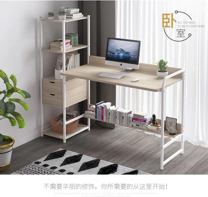 Bureau d’ordinateur en bois massif, meuble de bureau et de maison, avec étagères de rangement, table de jeu d’angle Taille: 80*58 *(90-130)