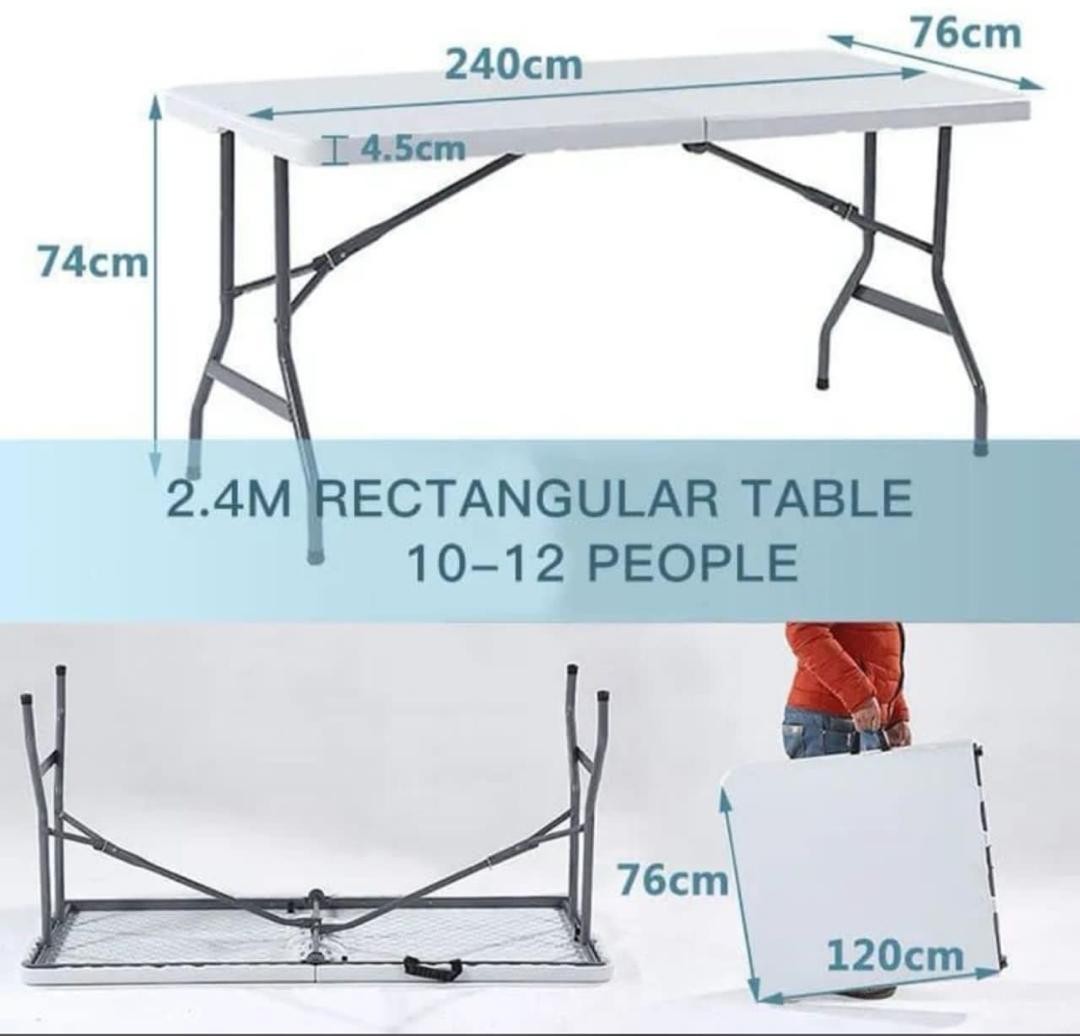 Table Pliante En Plastique Portable, Pique-Nique En Plein Air, Camping, Salle À Manger, Fête Intérieure Très Tendance Et Très Pratique Dimensions 2m40.