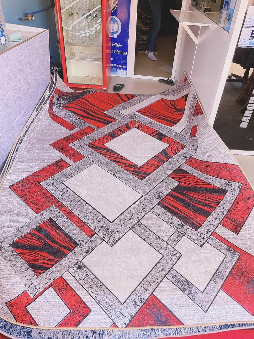 Tapis De Salon Chambre Design Moderne Gris Rouge Noir Blanc Géométrique Carreaux Moucheté Fin Doux Frise 2*3 Métre