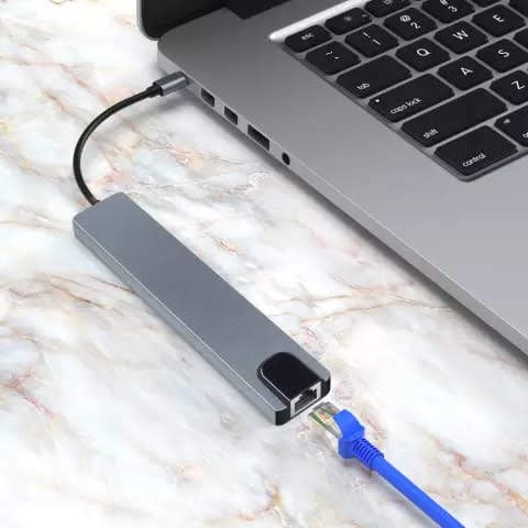 Adaptateur Hub USB C Sybra 8-en-1 - HDMI 4K UHD - Ethernet - USB 3.0 - Station D'accueil