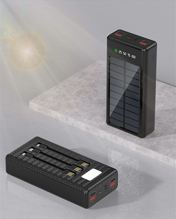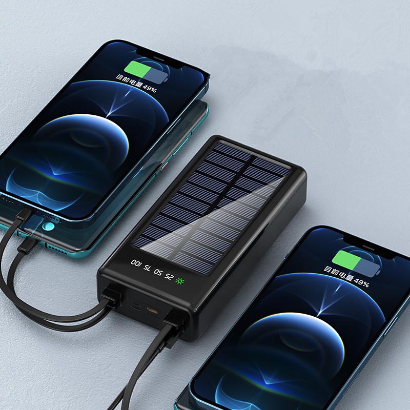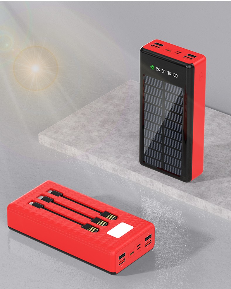 Batterie Solaire Portable Avec 3 Câbles, (10000 Et 20000)mAh, Power Bank, Etanche, Pour Xiaomi, Samsung, iPhone