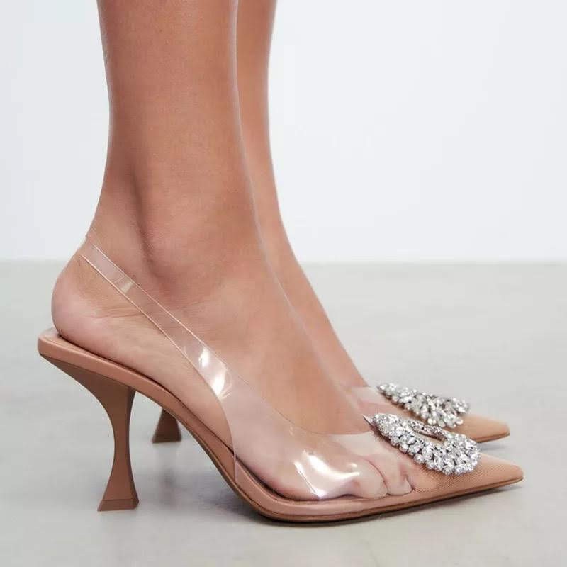 • Chaussures à talons ouvertes à l'arrière en vinyle.