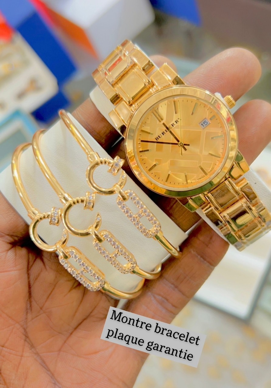 • Admirez le bracelet en acier inoxydable de couleur dorée.