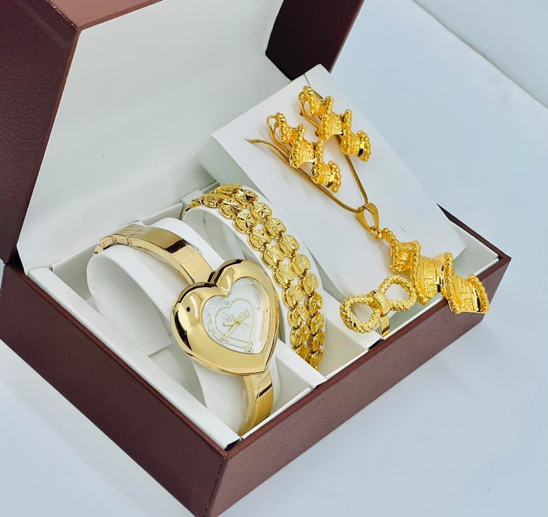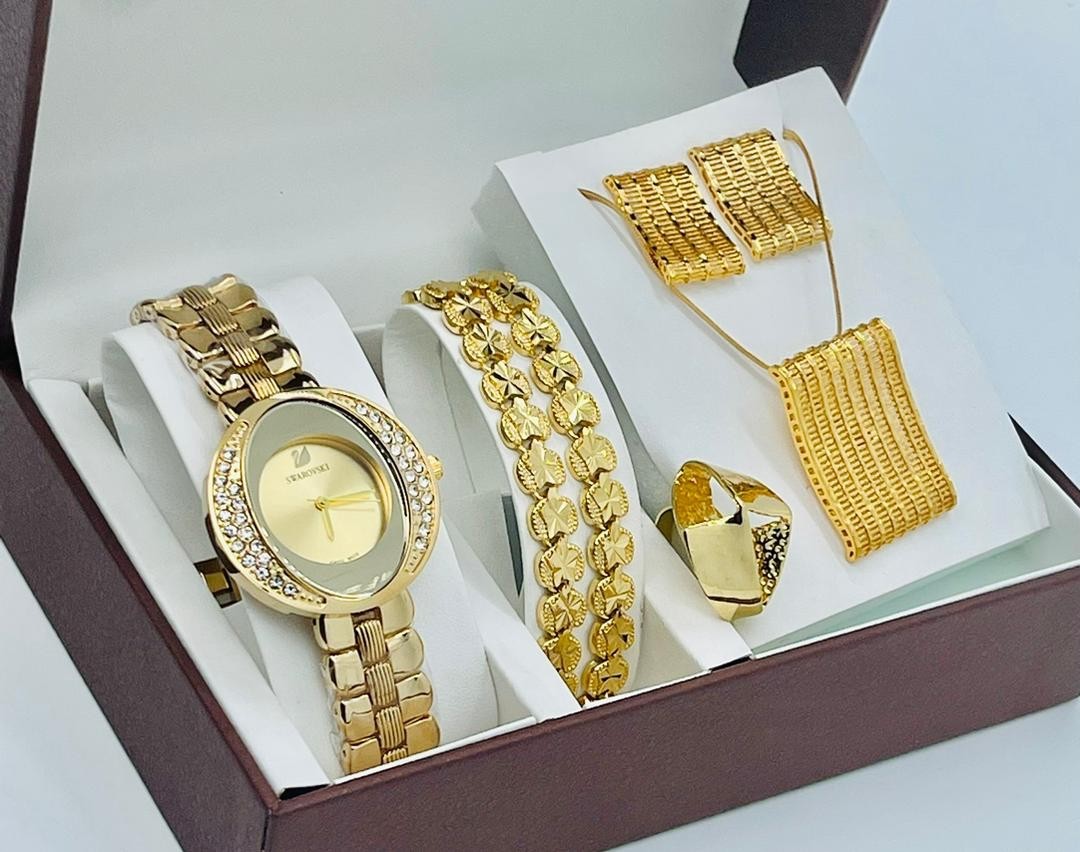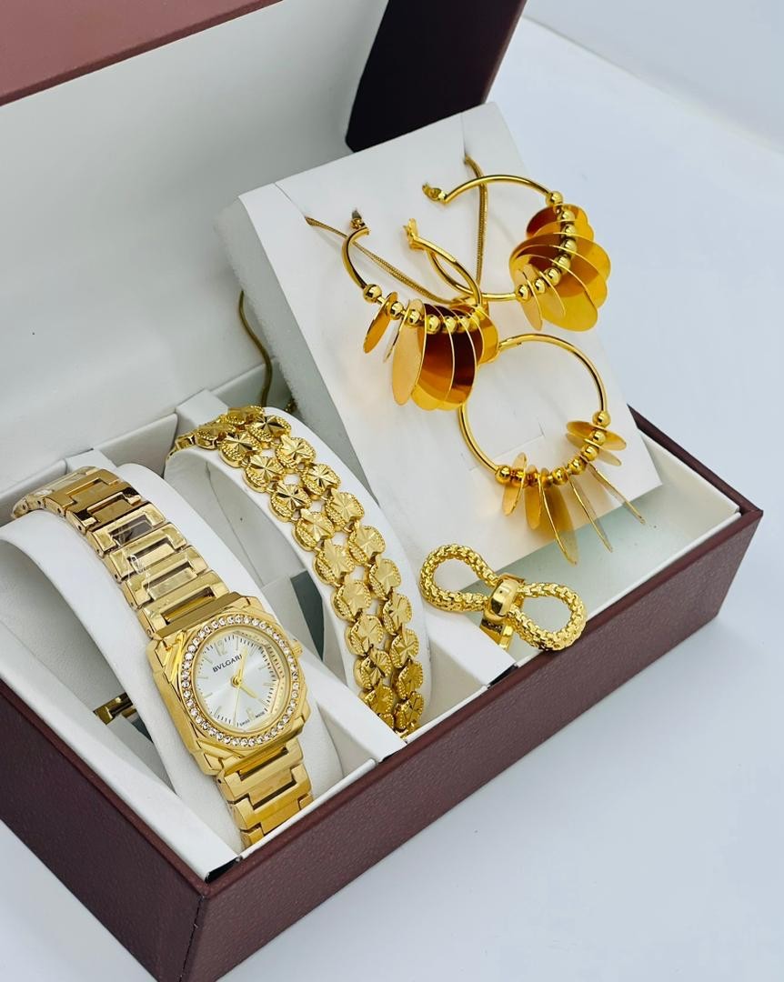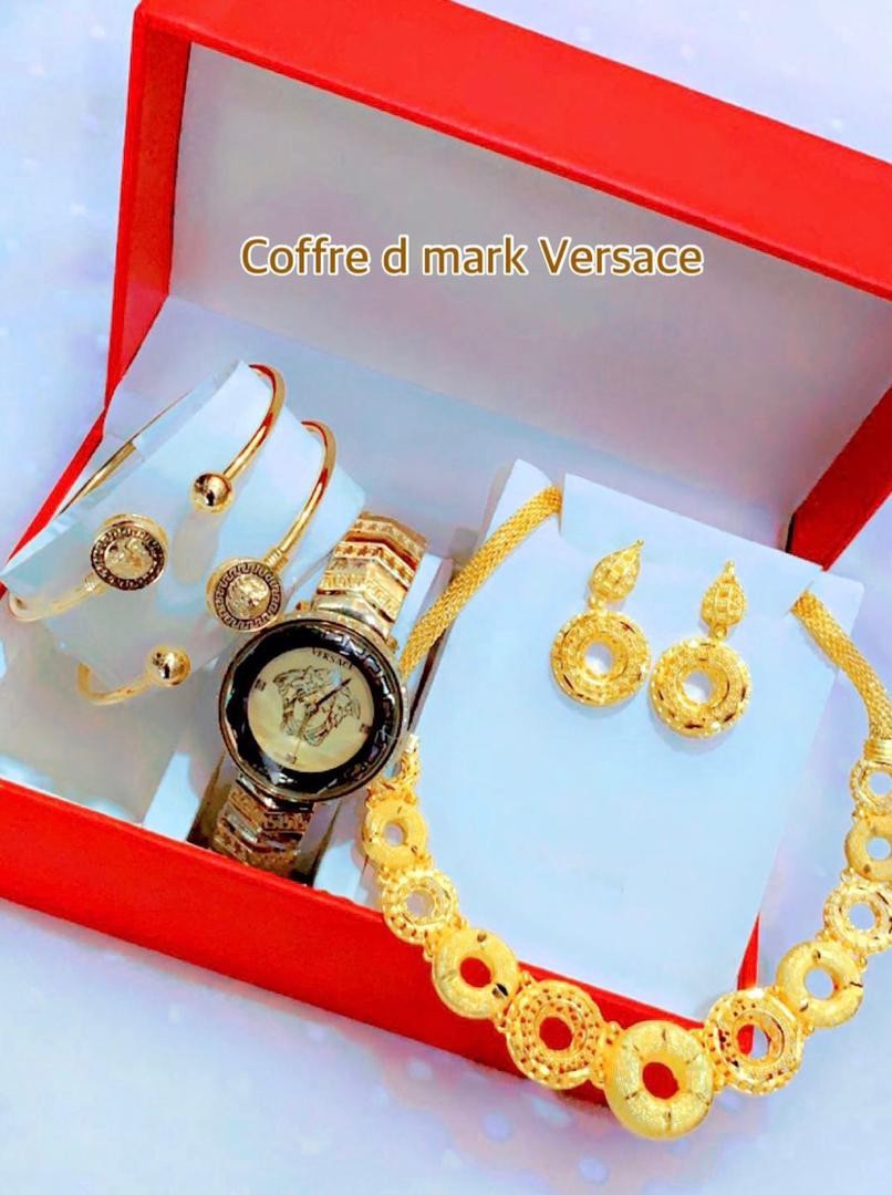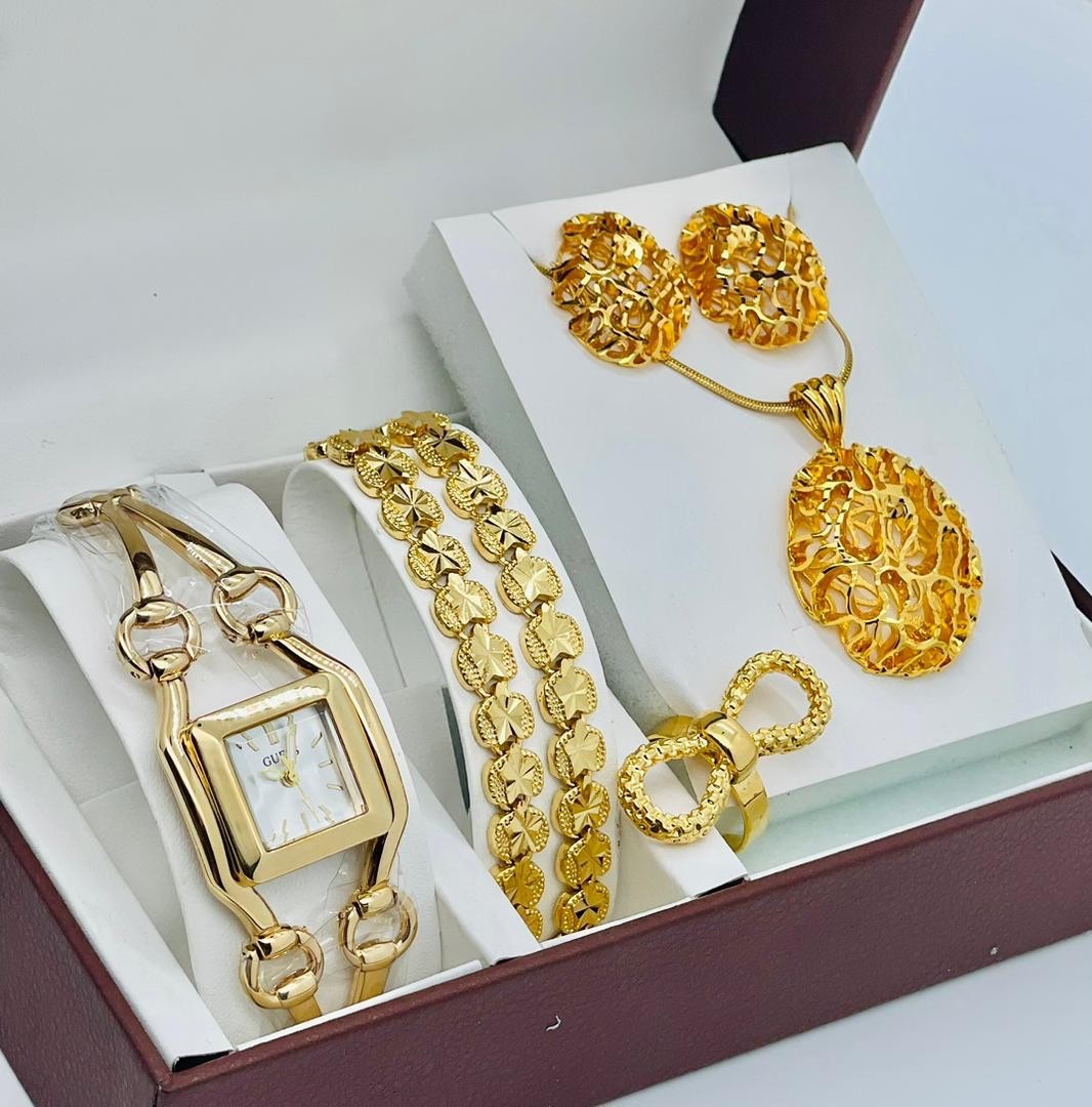 • Coffret Plaqué Montre, Bracelet, Bague, Chaine, Boucle D'oreille
