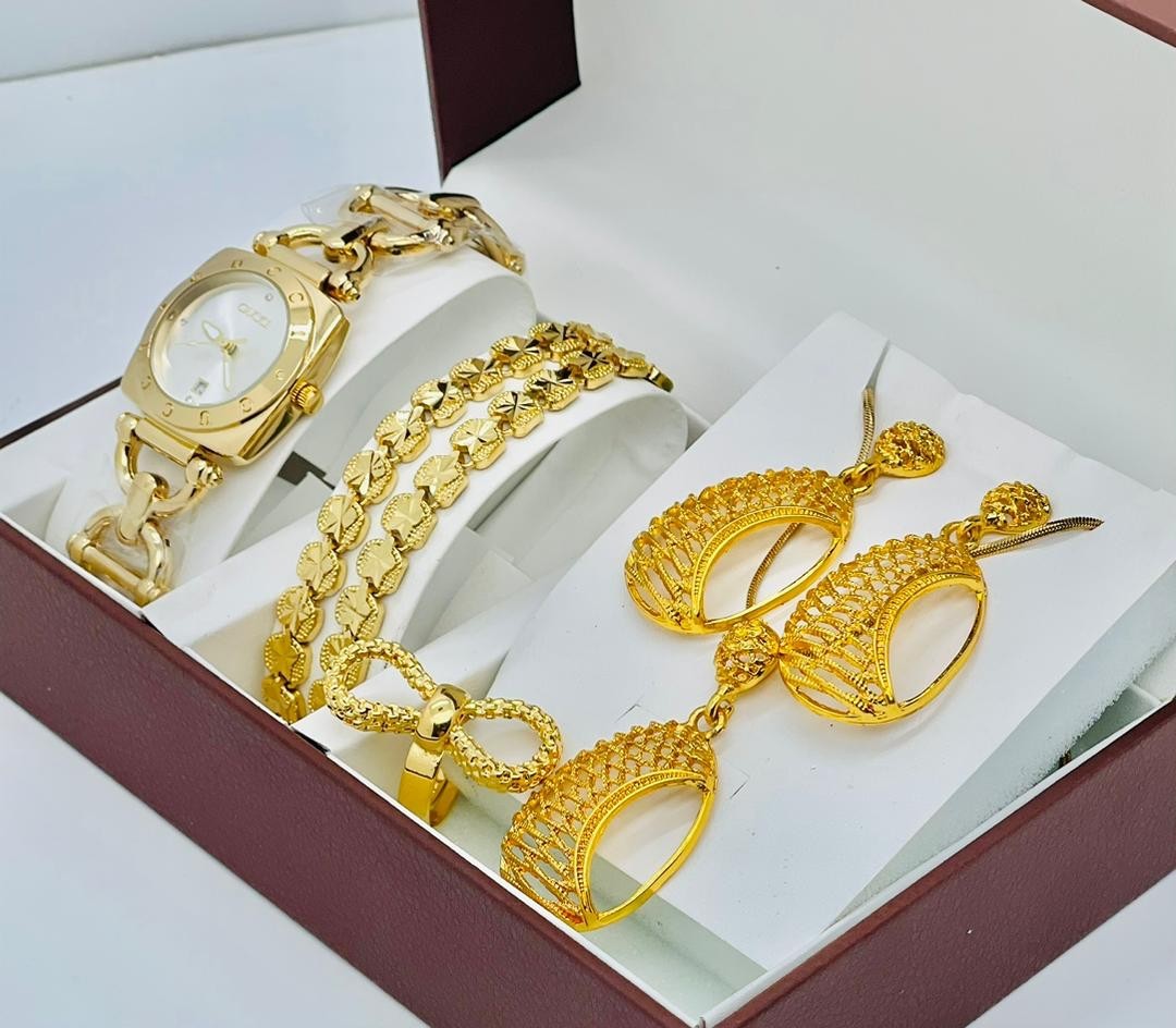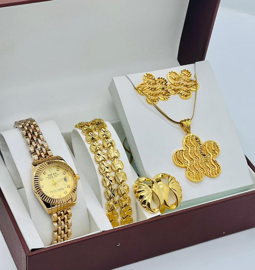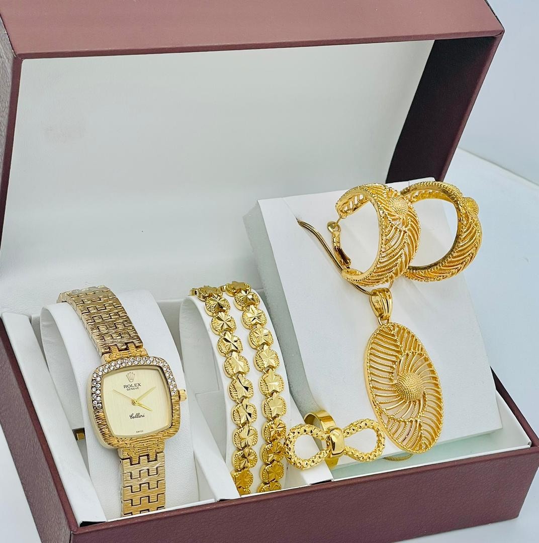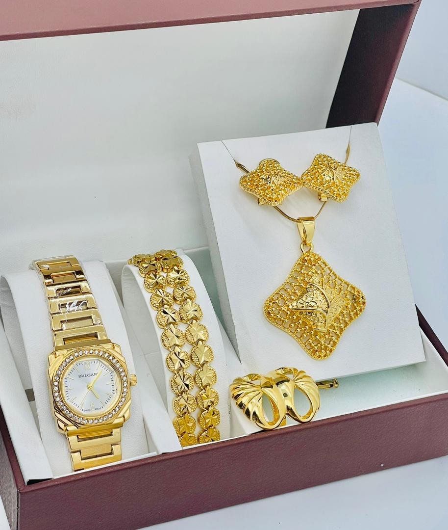 • Coffret Plaqué Montre, Bracelet, Bague, Chaine, Boucle D'oreille