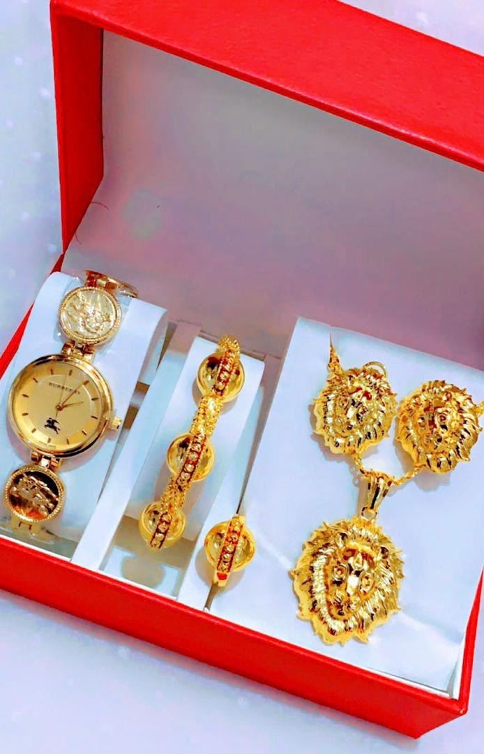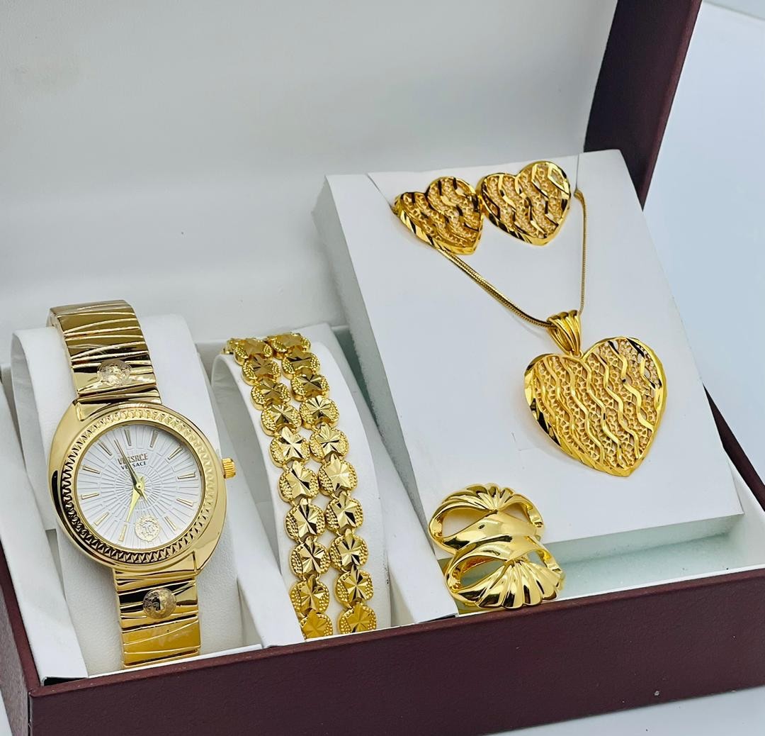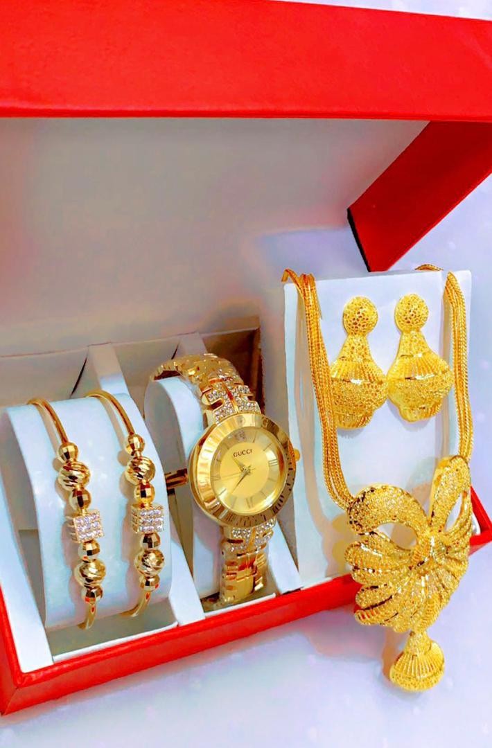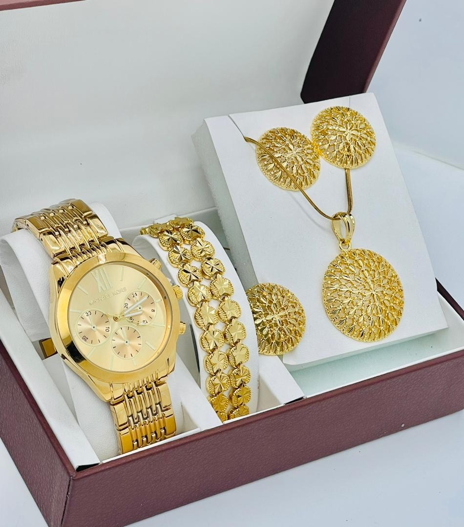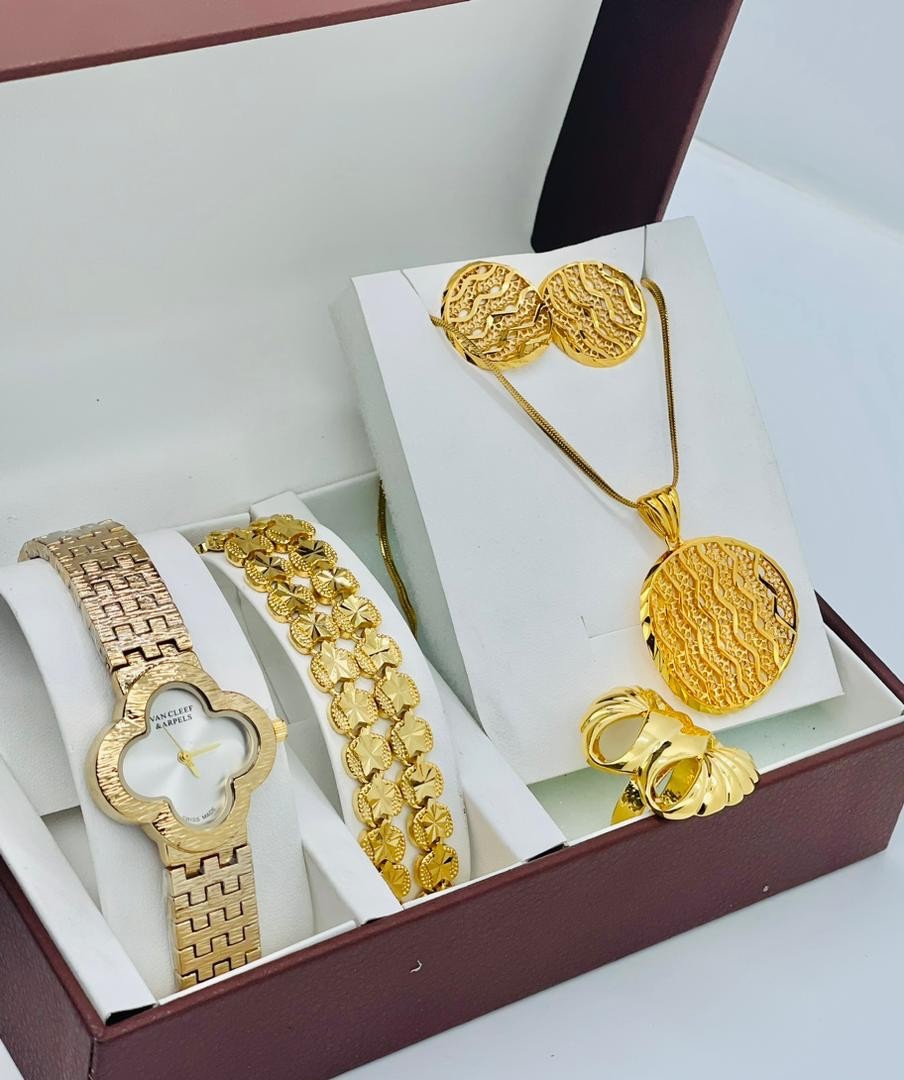 • Coffret Plaqué Montre, Bracelet, Bague, Chaine, Boucle D'oreille