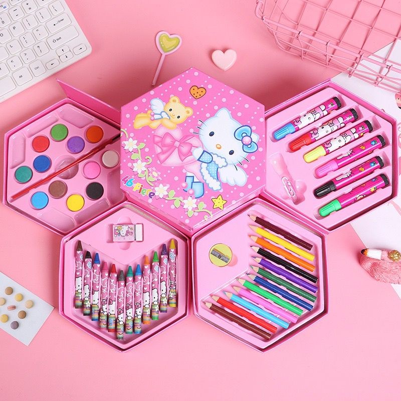 Combinaison De Crayons Aquarelle 46 Pièces, Stylo De Couleur Pour Enfant, Coffret Cadeau, Ensemble De Papeterie Pour Offrir Aux Enfants Un Cadeau De Vacances