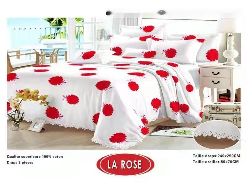 • Quantité : 3 pièces : 1 drap plat et 2 t’aies d’oreillers
