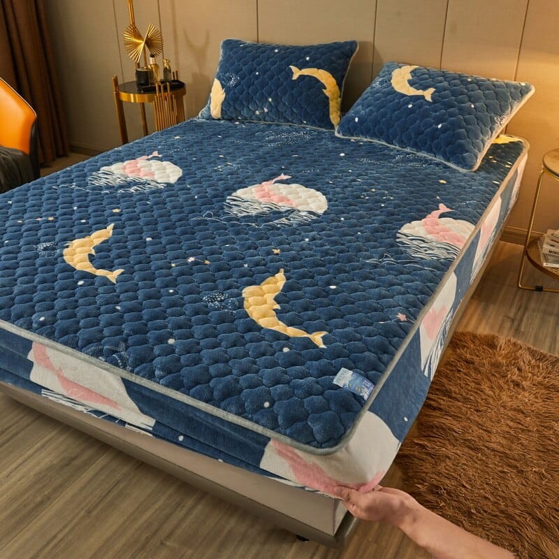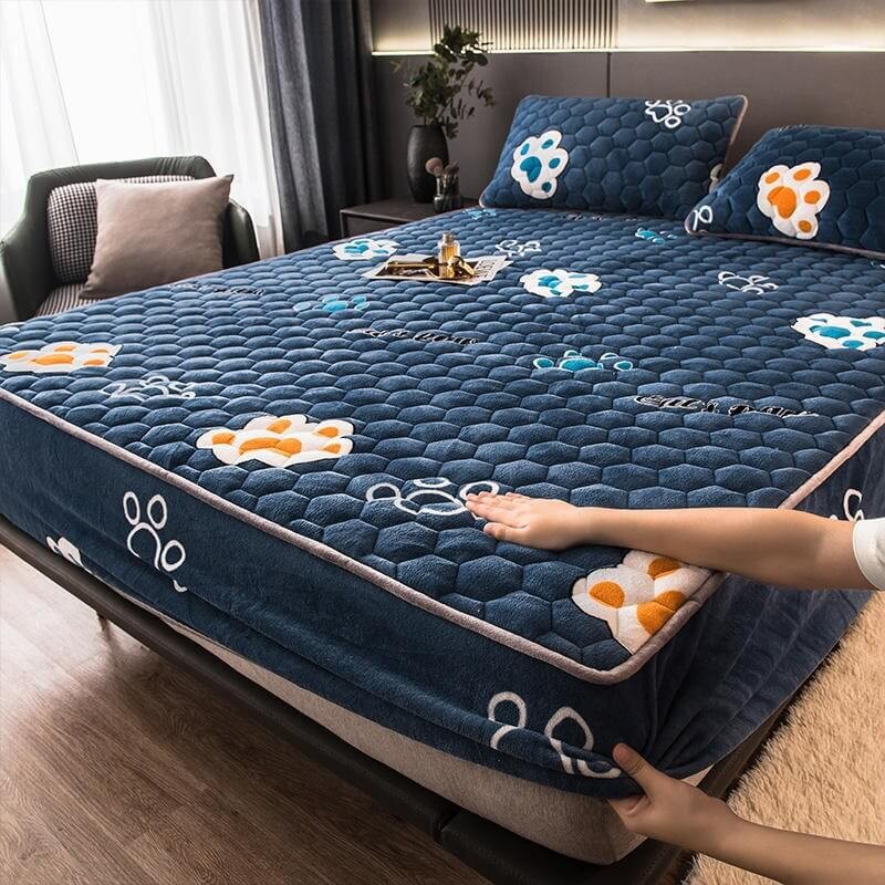 Drap De Lit Résistant À Poches Profondes Pour Matelas Double, Draps De Lit D'hiver En Flanelle Chaud En Peluche Epaisse Pour Chambre À Coucher, Appartement, Motif Pattes De Chien