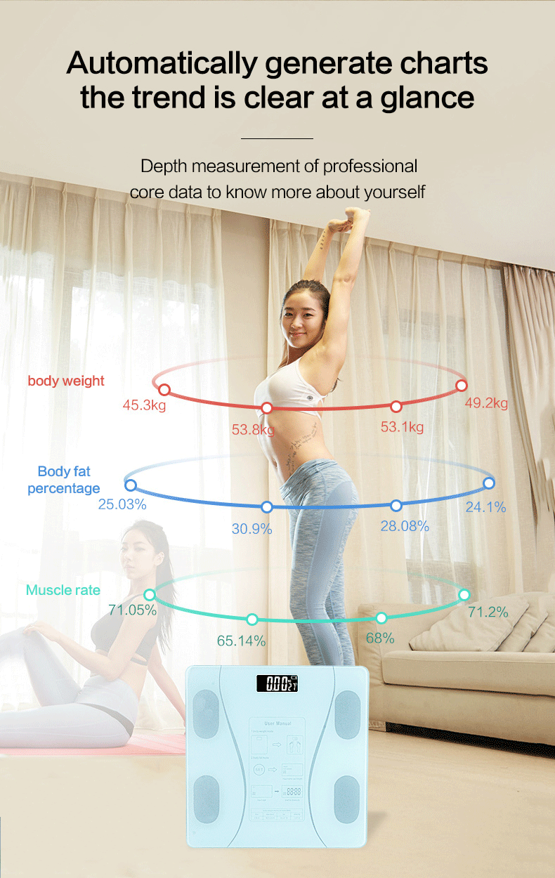 Échelle d’IMC utile Balance d’IMC d’affichage à cristaux liquides antidérapante intelligente et porteuse d’humidité numérique-Smart IMC Balance De Graisse Corporelle
