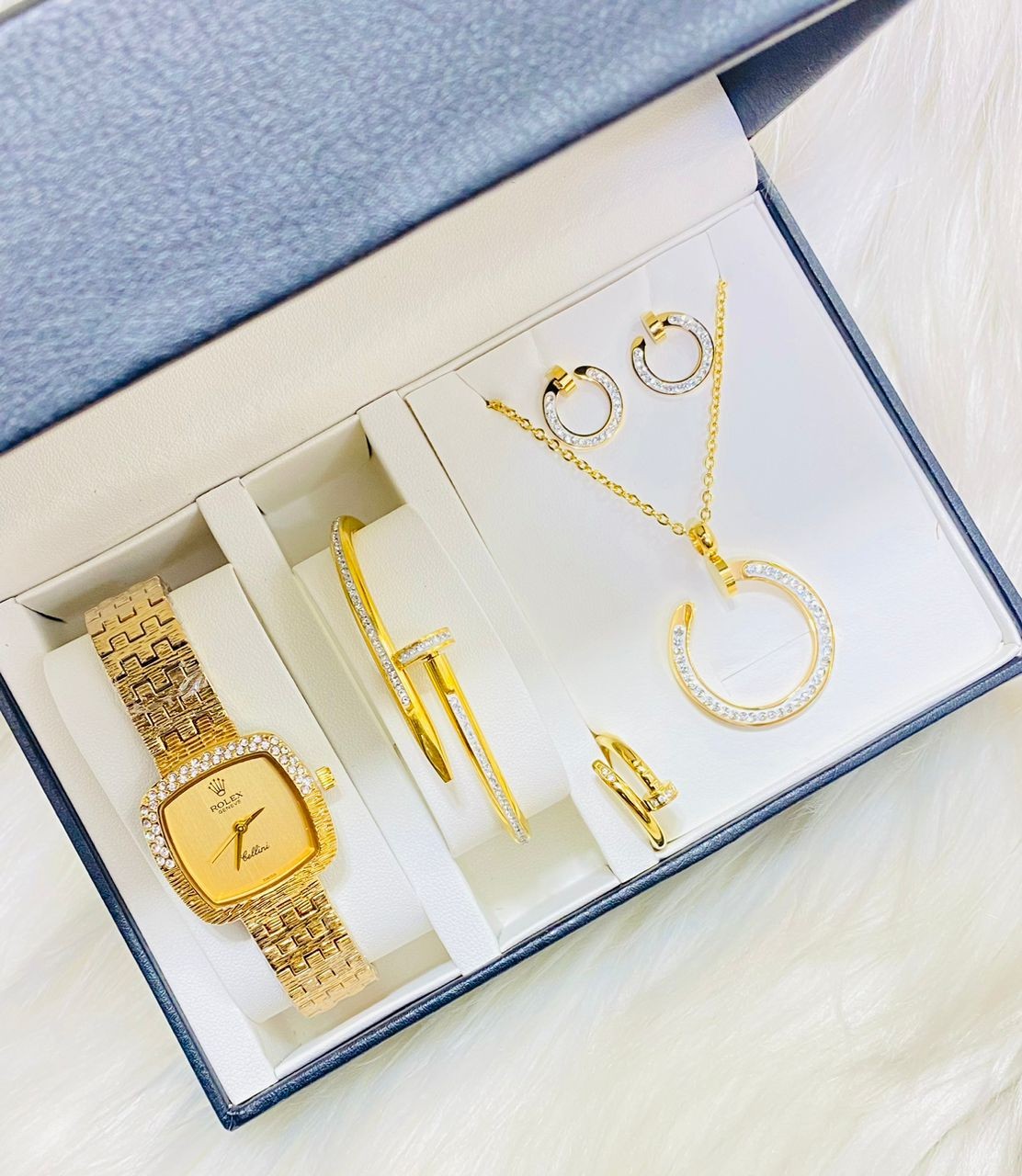 Ensemble 3 Pièces Coffret Montre De Bijoux En Plaqué, Chaine offrir Pour Un Cadeau Précieux Avec Une Qualité Supérieure Et Garantie
