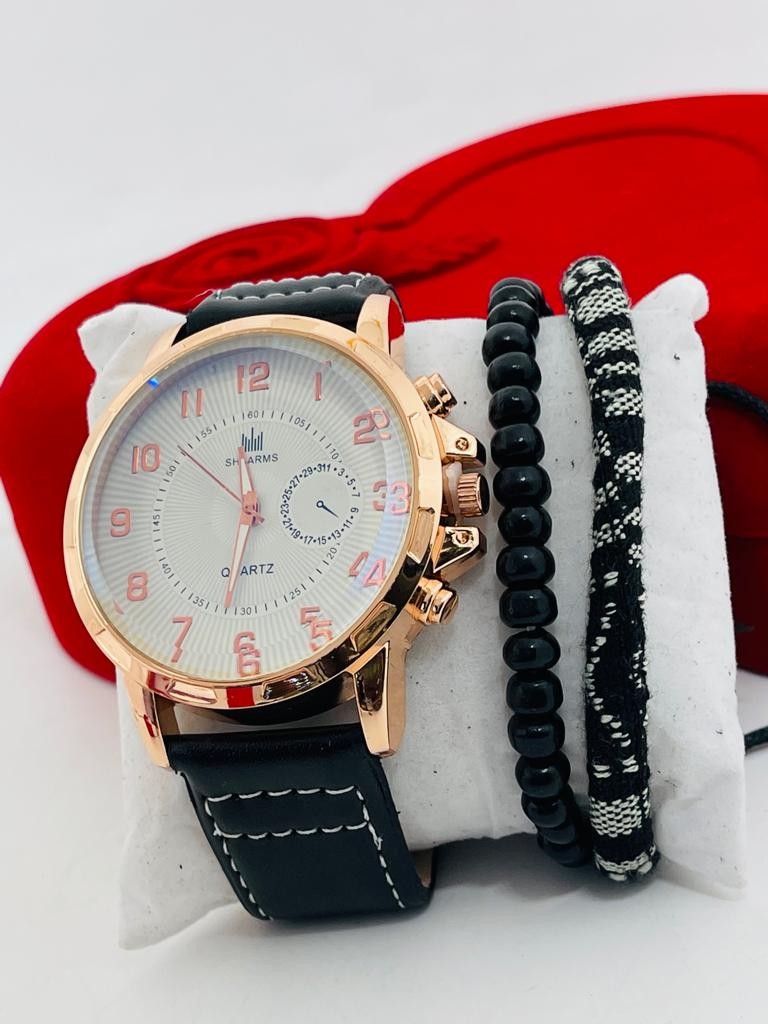 Ensemble 3 Pièces Montres Pour Hommes Avec Bracelets, Ensembles De Montres, Mode D'affaires, Montre À Pointeur Rond Décontracté Pour 03, Sports