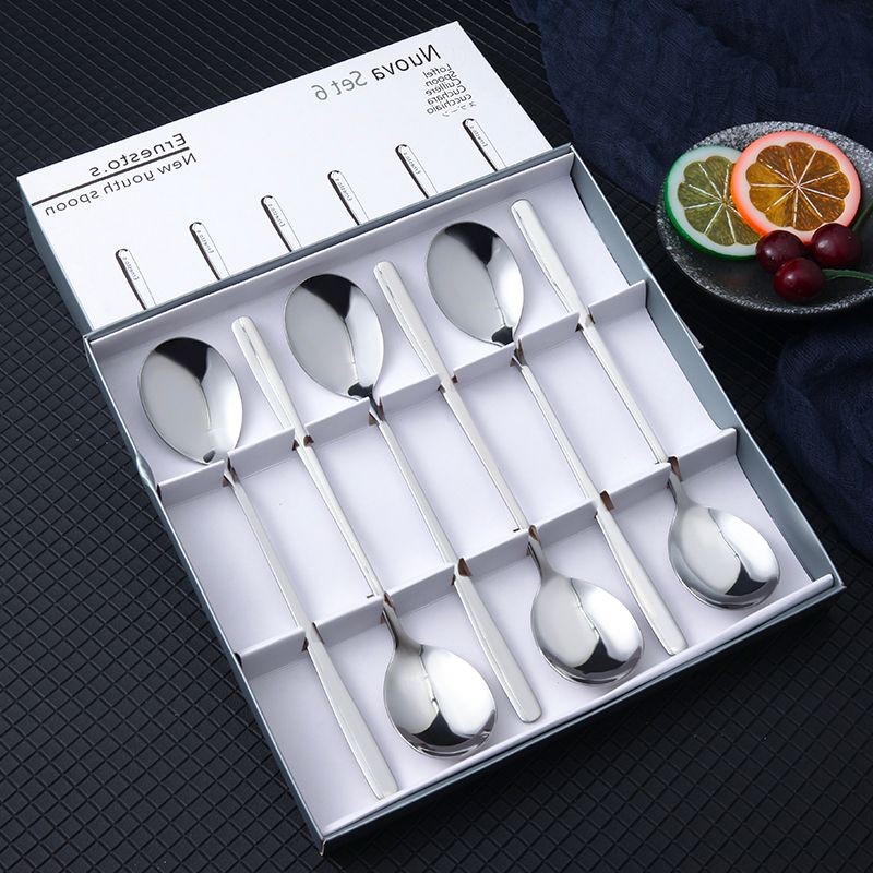 Ensemble Boîte Cadeau 6 Pièces Cuillères, Couverts En Acier Inoxydable, Cuillère Coréenne De Ménage À Long Manche Remuer Dessert Café Thé Cuillère De Table