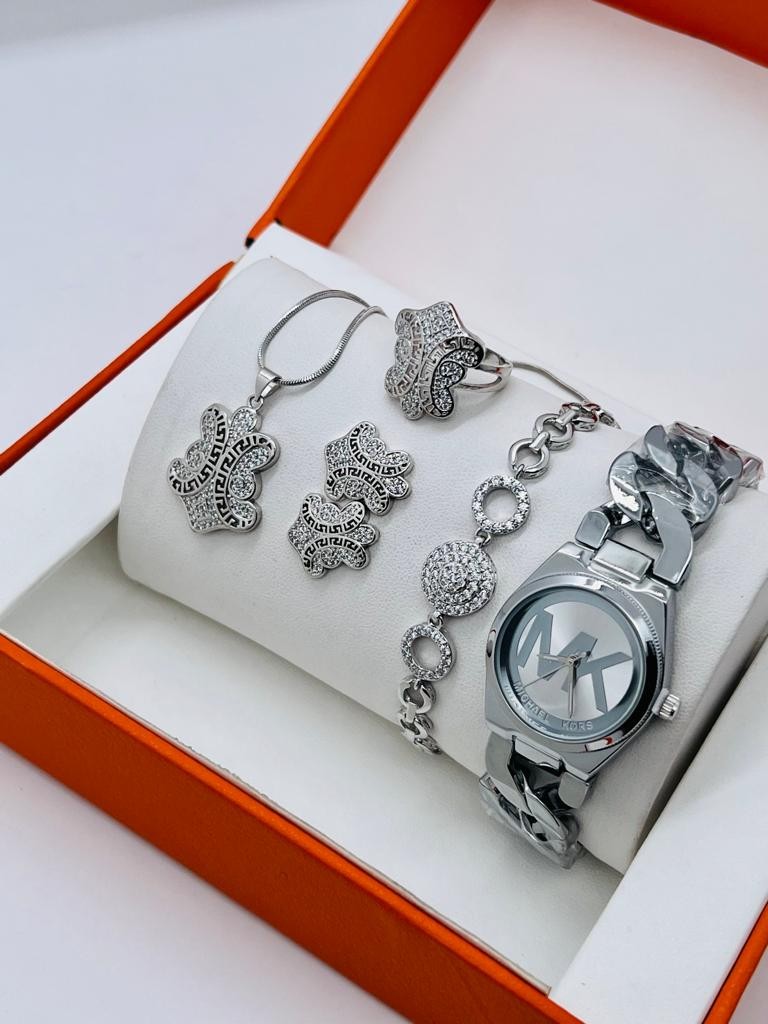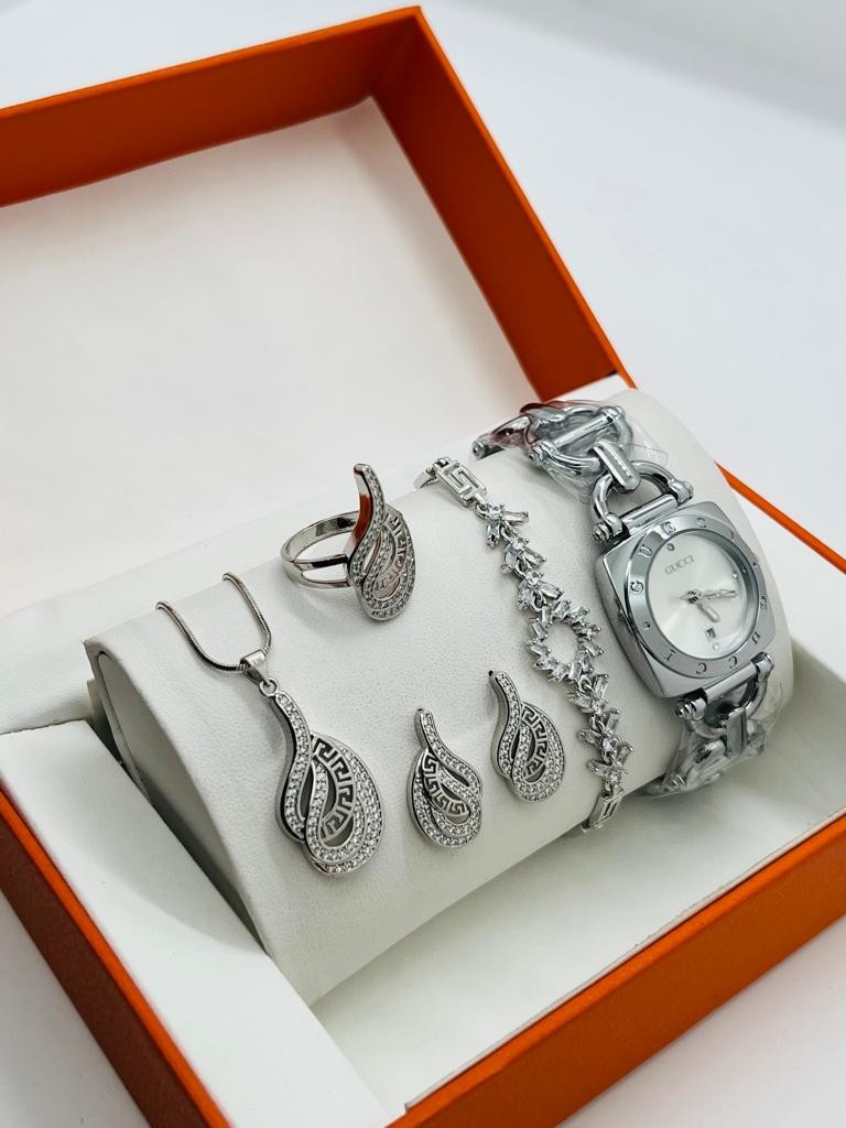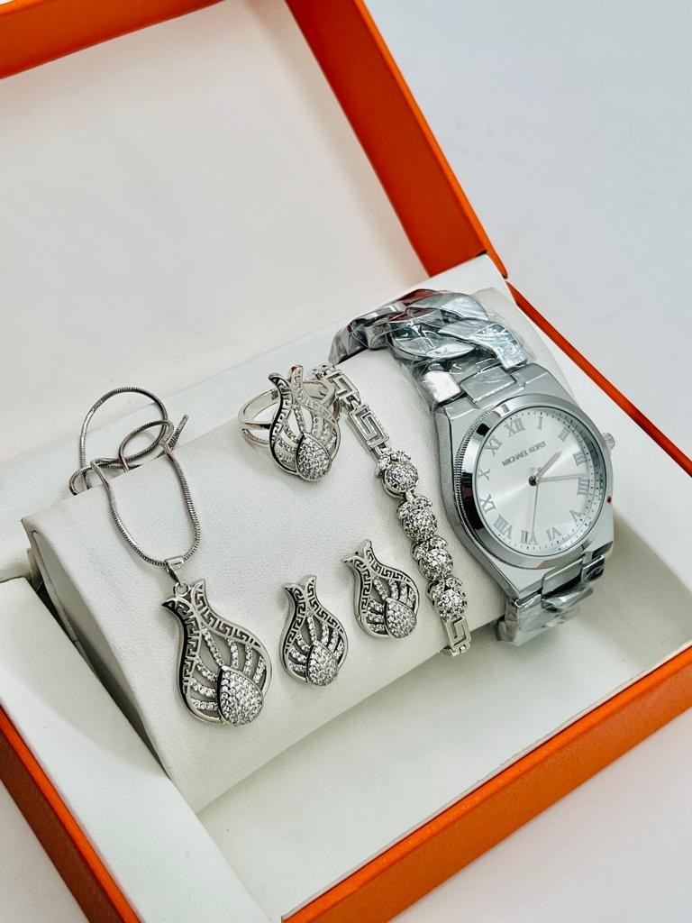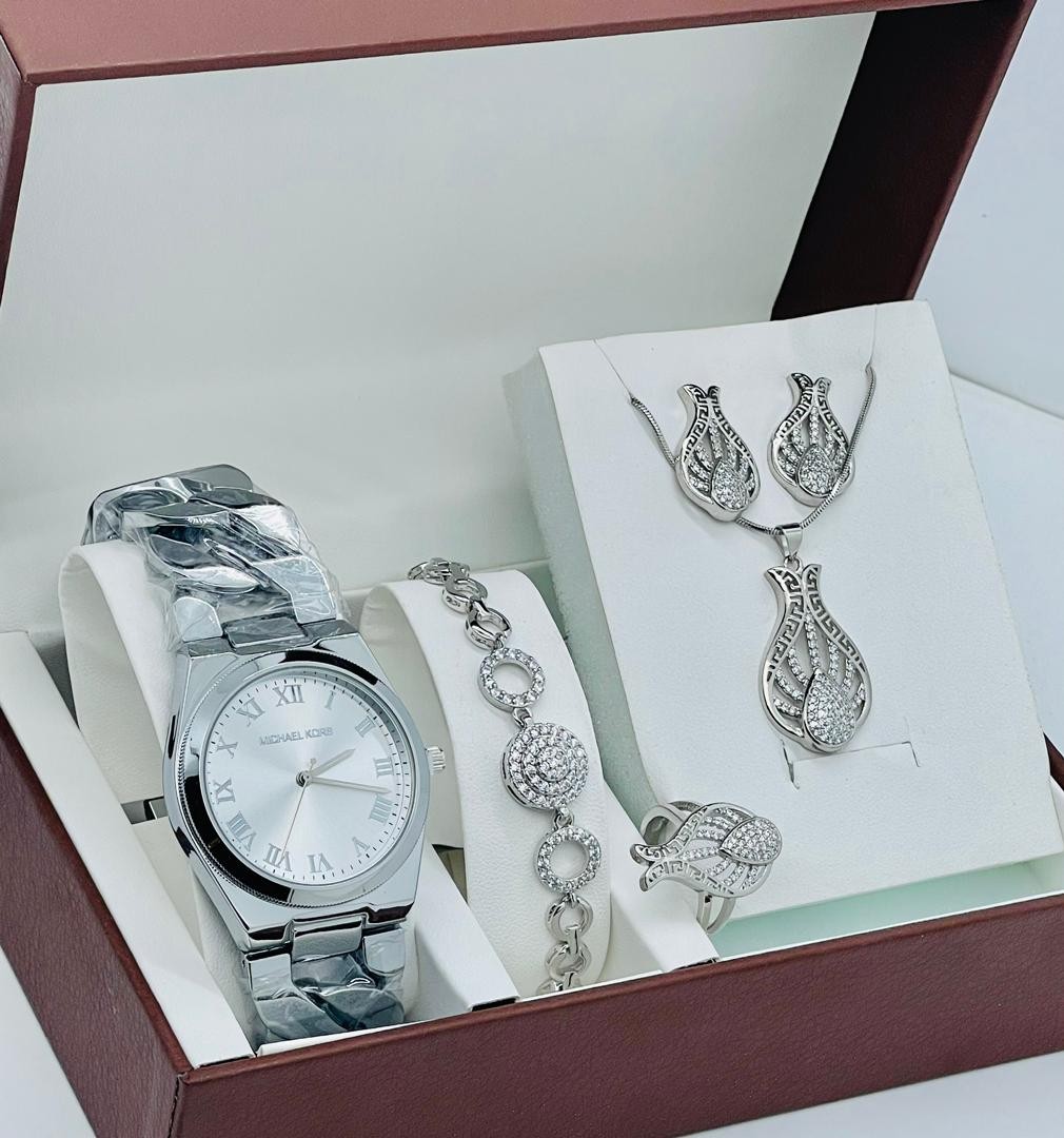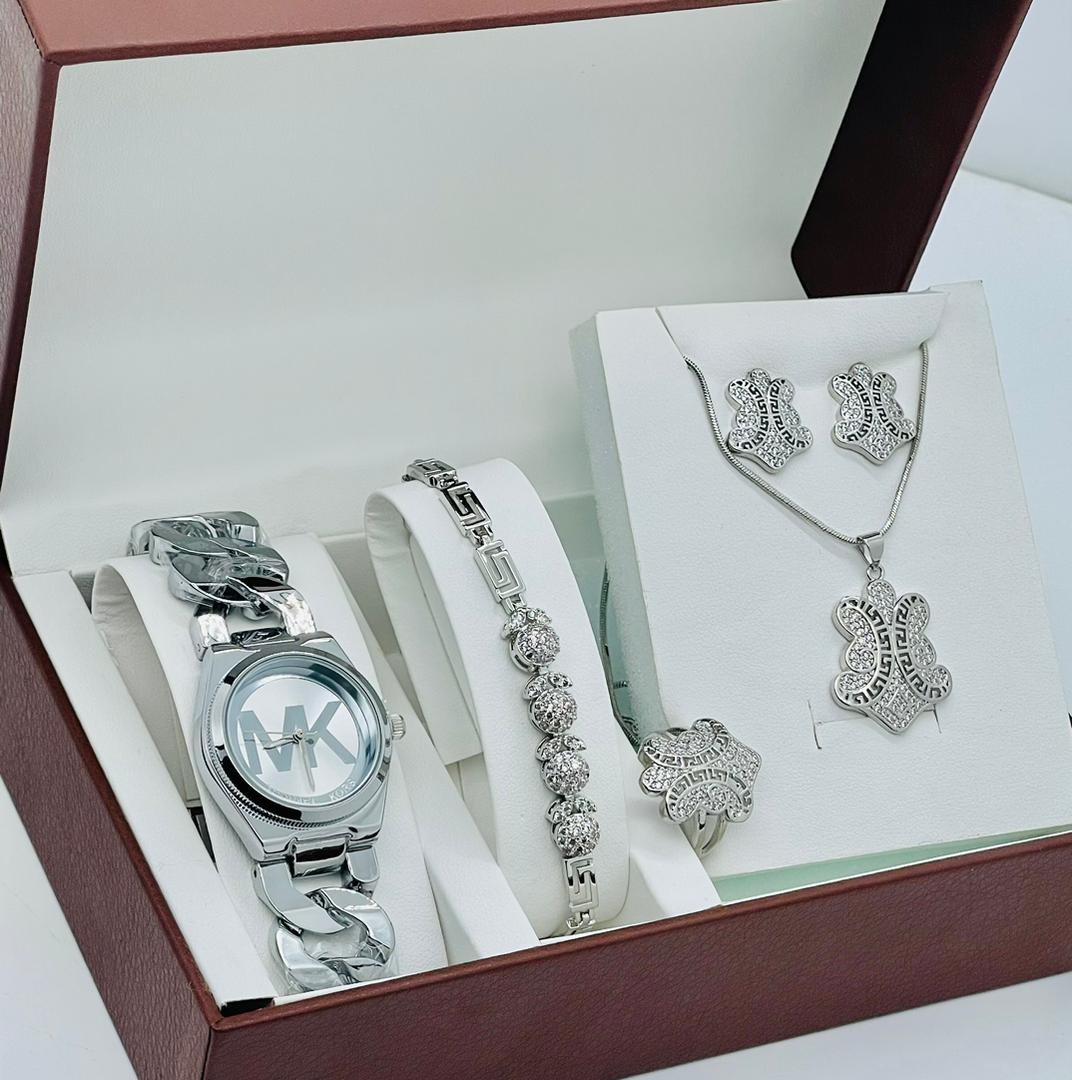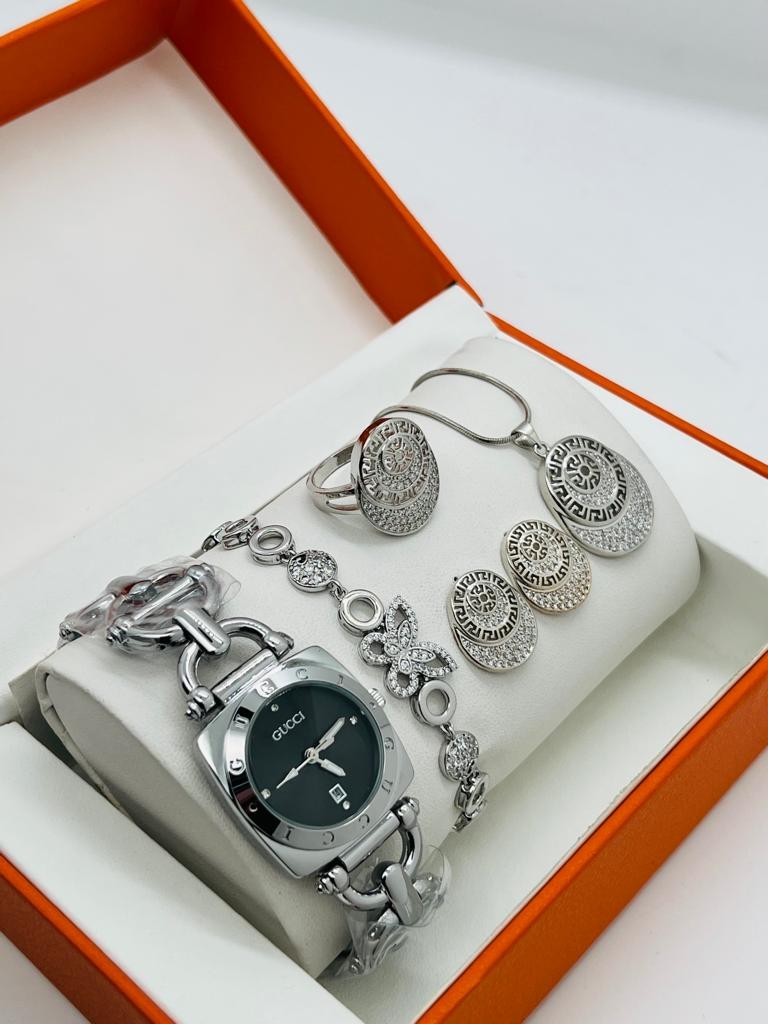 • Ensemble De Montres  Pour Femmes, 5 pièces, Bracelet, Collier, Boucles D'oreilles, Cadeau D'anniversaire, A La Mode, Cadeau De Saint Valentin, Avec Boîte