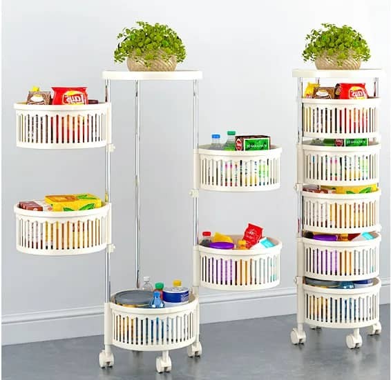 Étagère Rotative De Cuisine À 5 Niveaux En Acier Inoxydable, Paniers Résistants À 360, Stockage De Fruits Et Légumes, Étagère Ronde Au Sol Avec Roues