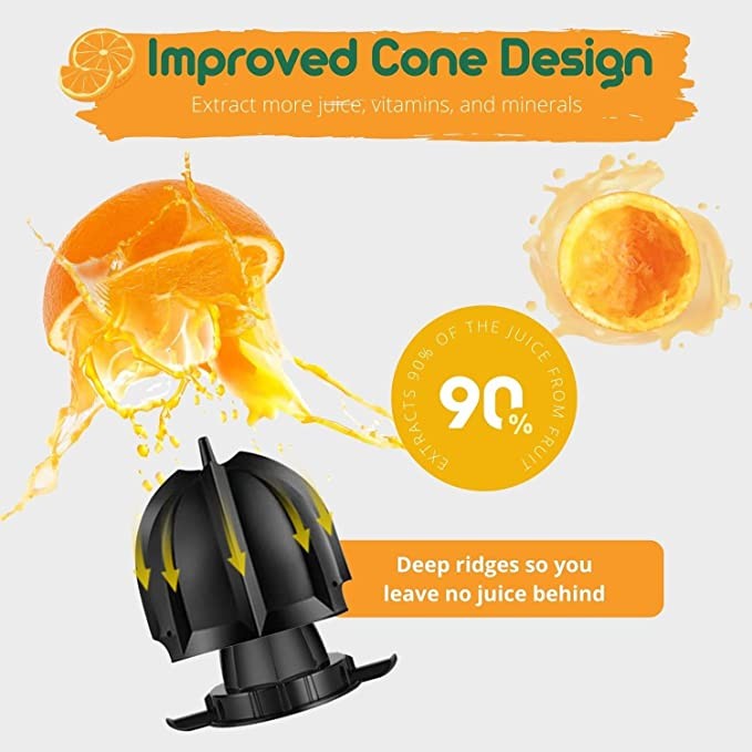 • Le cône de jus de taille unique est idéalement conçu pour être polyvalent pour extraire le jus des agrumes, de l'orange, du citron, du pamplemousse et d'autres fruits et éviter de presser en même temps