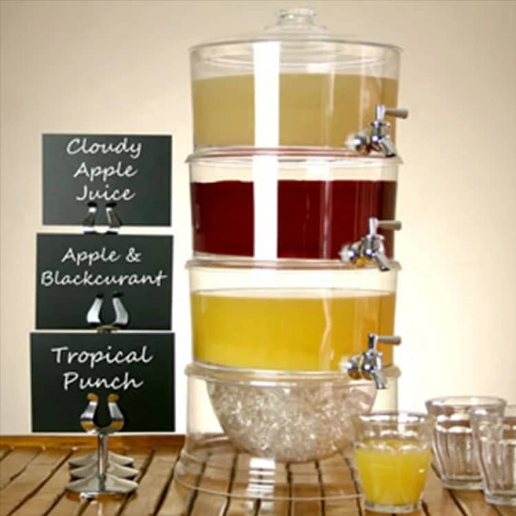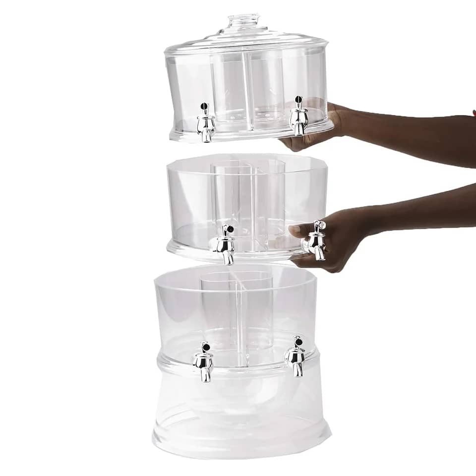 • Pour passer du service de boissons, 3 Niveaux Boisson Distributeur vous permet de servir jusqu'à 3 boissons différentes tout en un pratique boisson tour. Parfait pour les fêtes et les buffets, ce à plusieurs niveaux de distributeur de boissons laissera vos invités l'embarras du choix.