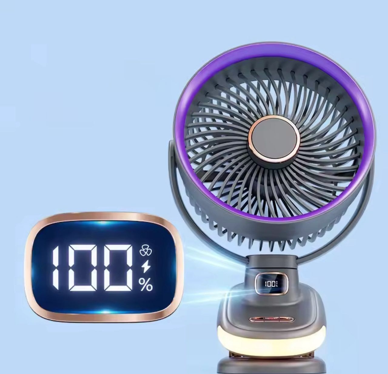 [Facile à utiliser et petite veilleuse] Ce ventilateur de table peut être placé sur un bureau, fixé au plan de travail ou accroché au mur grâce au trou de vis inférieur. Facile à utiliser, il est frais, confortable et facile à utiliser. Double-cliquez sur le bouton du ventilateur pour activer la petite veilleuse et créer une atmosphère chaleureuse. [Minuterie et affichage numérique intelligent] Ce ventilateur personnel au design élégant est doté d'une fonction de minuterie. Vous pouvez régler la minuterie sur 2, 4 ou 8 heures. L'écran LED affiche la vitesse du vent, le pourcentage d'électricité et la durée de la minuterie. Toutes les informations sont clairement visibles.