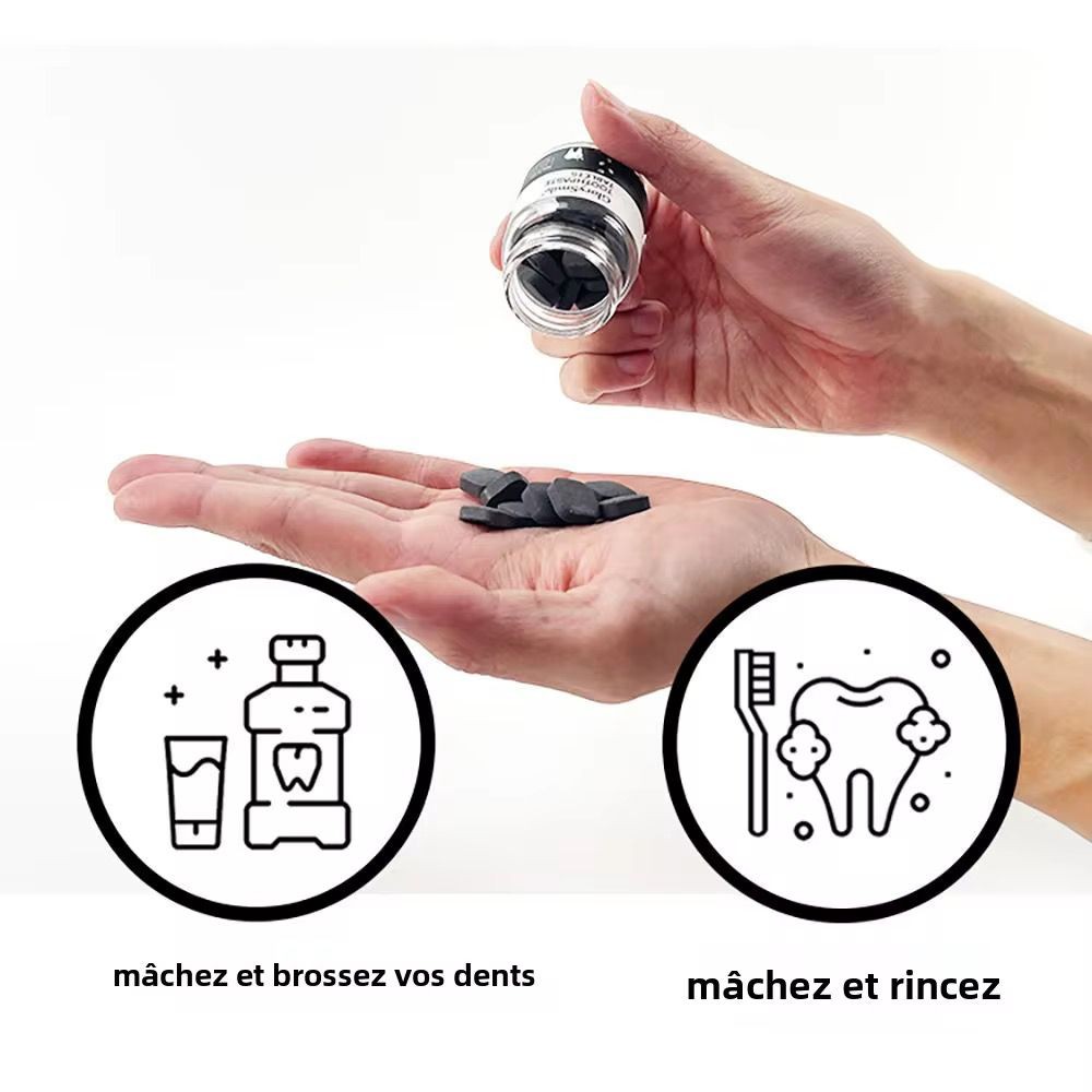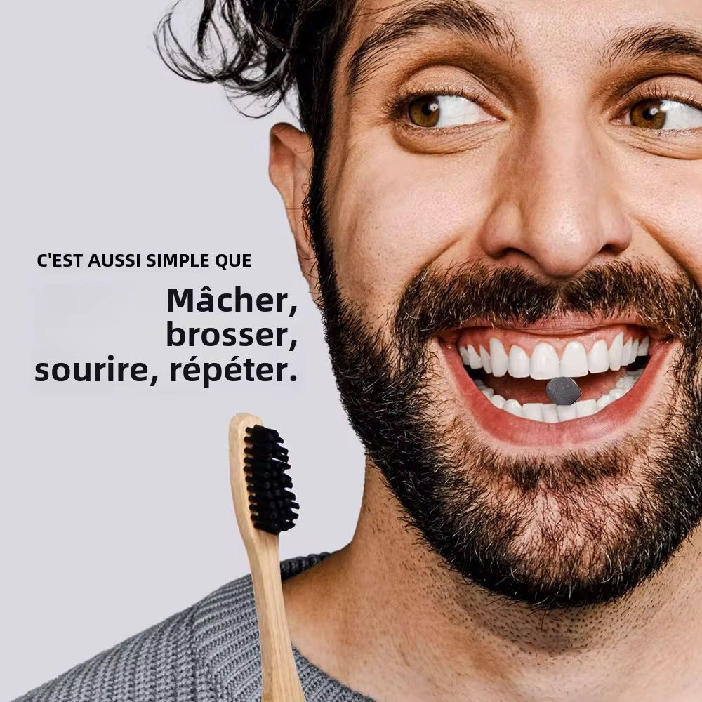 Instructions : Mâchez dans une pâte, ou appuyez sur les poils de brosse à dents et ajoutez quelques gouttes d'eau. Brossez-vous les dents comme d'habitude. Cracher ; ne pas rincer. Utilisez le matin et le soir.