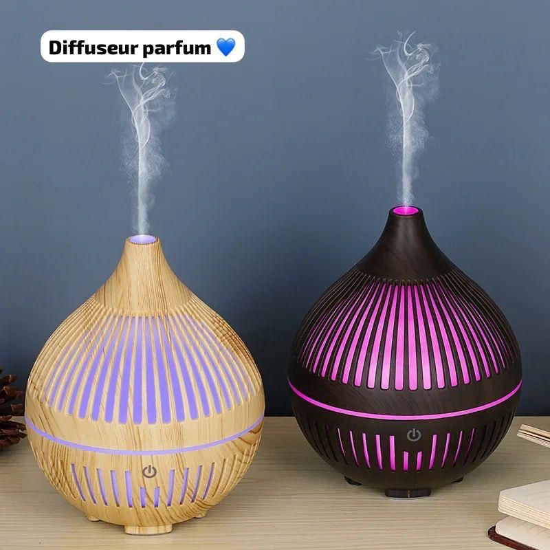 Humidificateur LED De Couleur De Grain De Bois À Rayures Creuses De 160 ml - Bouchon Noir / UE