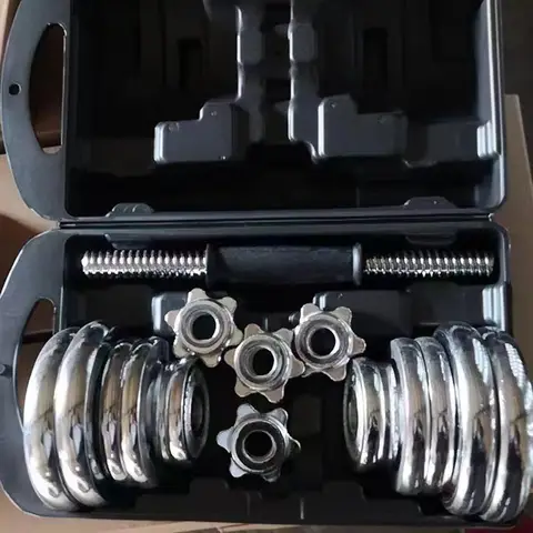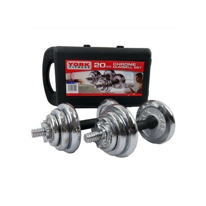 Kit haltère York Chrome Neuf avec valise de rangement très pratique pour faire votre séance de musculation at home.