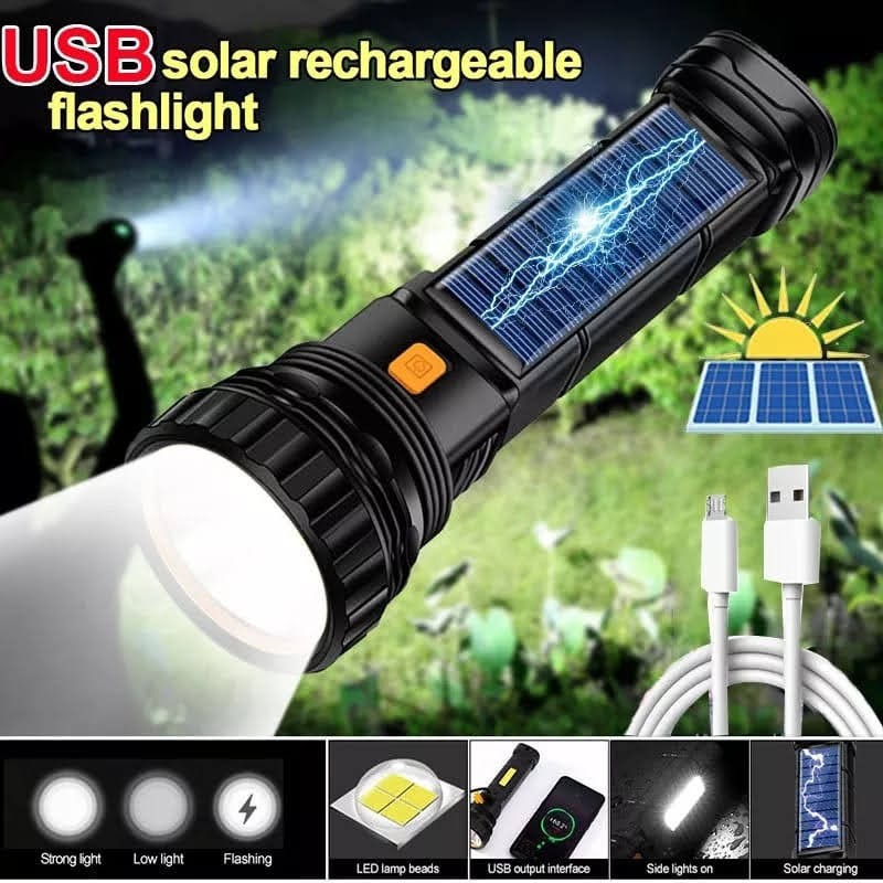 Lampe Torche Led Ultra Puissante Rechargeable + Alarme 90dB Chargeur Solaire [Lampe Multifonction :Led Puissantes + Led Ambiance + Aimant + Brise glace + Boussole + Power-Bank + 4 Modes A Armes 90dB]