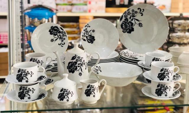 Lot De vaisselle En Porcelaine De 50 Pièces Noir Blanc
