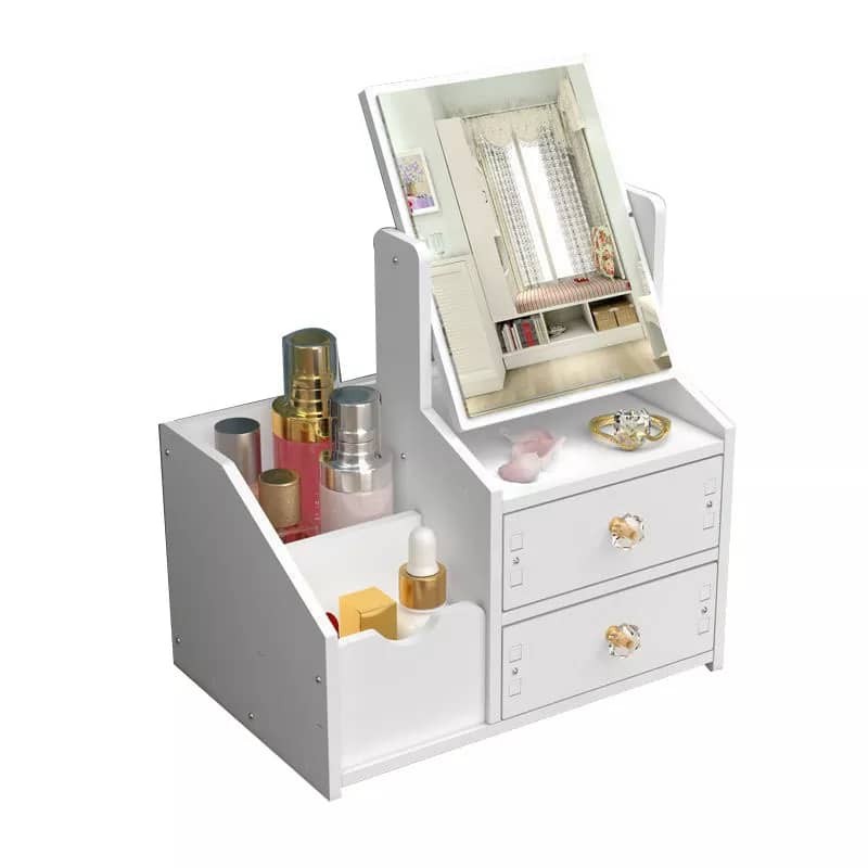• Mini table de maquillage en bois ébréché avec miroir rotatif étagère assemblage cosmétiques support de rangement produits de soins de la peau organisateur tiroir