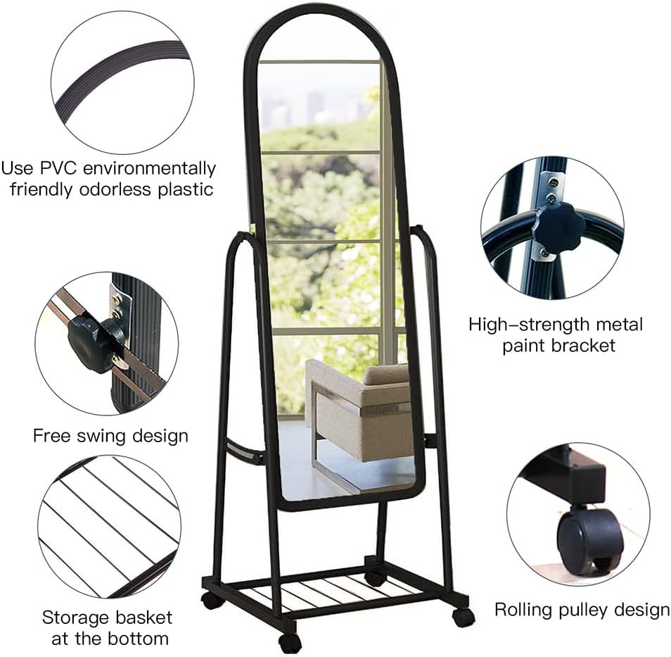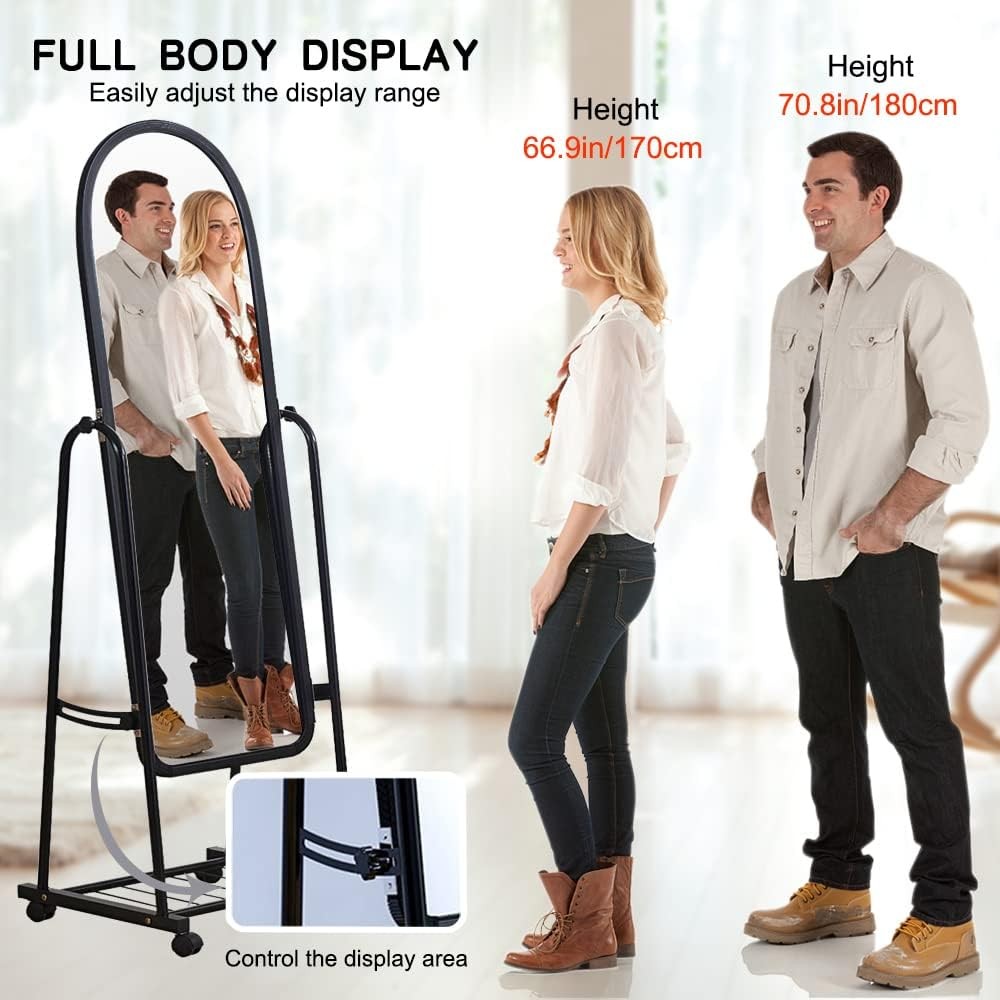 l✔ Anti-explosion – Ce miroir pleine longueur adopte un miroir flottant de haute qualité, un design anti-explosion, l'image est claire et sans distorsion. Support en fer métallique, style minimaliste moderne, durable et facile à installer. ✔ Angle réglable – Le miroir avec bouton réglable vous permet d'ajuster librement l'angle que vous voulez selon vos propres besoins et d'ajuster facilement la zone de visualisation. ✔ Design à roulettes : quatre roulettes amovibles sur le fond pour un mouvement facile, et le miroir peut être fixé après le retrait. La surface blanche de ce miroir pleine longueur et les lignes lisses de son cadre en métal en font une belle décoration d'intérieur. ✔ Compartiment de rangement inférieur – Ce miroir de courtoisie dispose d'un compartiment de rangement inférieur pour votre maquillage, livres, sacs, accessoires, chaussures, etc. ✔ Utilisation : la taille est de 167,6 x 43,2 cm, idéal pour la chambre, le salon, le vestiaire, la salle de bain, le porche, le magasin de vêtements, l'hôtel, le studio, le salon de coiffure, le dortoir, le bureau, etc.