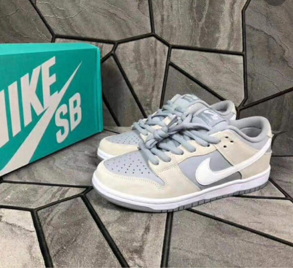 • Cette Nike SB Dunk Low arbore un cuir foulé gris sur la pointe ainsi qu'un cuir foulé noir sur les panneaux latéraux.
